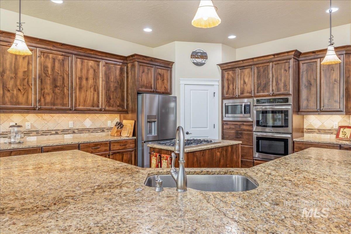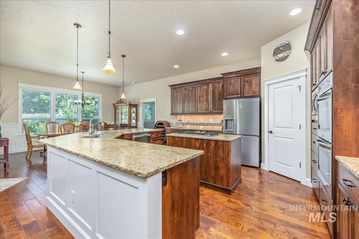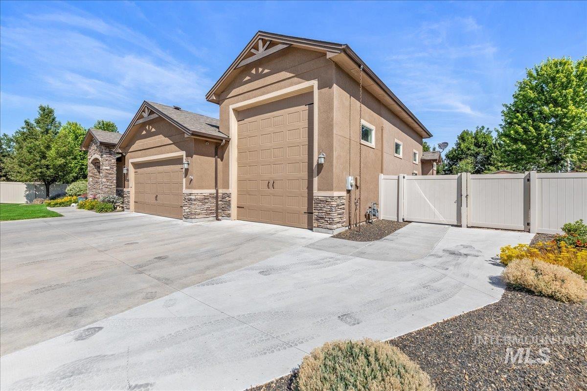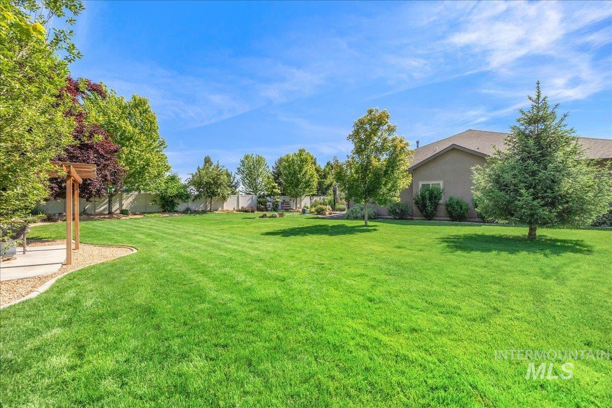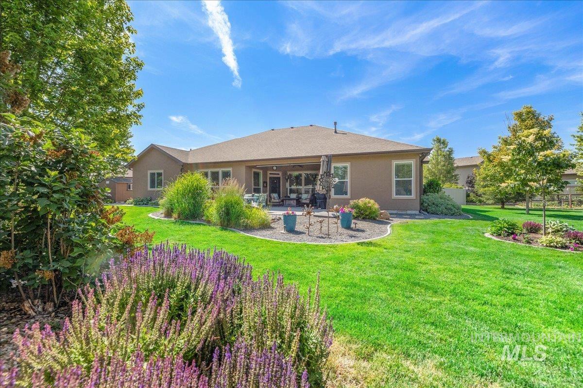 Stunning single-level home in the Lakes at Pristine Meadows. 3 bed | 3 bath | Office| Half-Acre Lot | RV Garage. This beautifully designed home offers the perfect blend of comfort, functionality, and luxury, nestled on a spacious half-acre lot with no back neighbors. Inside, you'll find 3 generous bedrooms, including 2 full ensuites with walk-in closets, 3 well appointed bathrooms, a dedicated home office perfect for remote work or hobbies, an open concept layout with spacious living and dining areas, chef's dream kitchen featuring a large island, double ovens and walk-in pantry. Step outside and enjoy a covered patio perfect for relaxing year-round, garden space and room for a pool, two storage sheds for all your tools and toys, an extra large, climate-controlled RV garage with loft storage. Additional features include a new HVAC system, water softener and whole house water filter, plumbed for central vacuum, access to a private 5-acre lake exclusive to residents--ideal for fishing and day use at the beach.