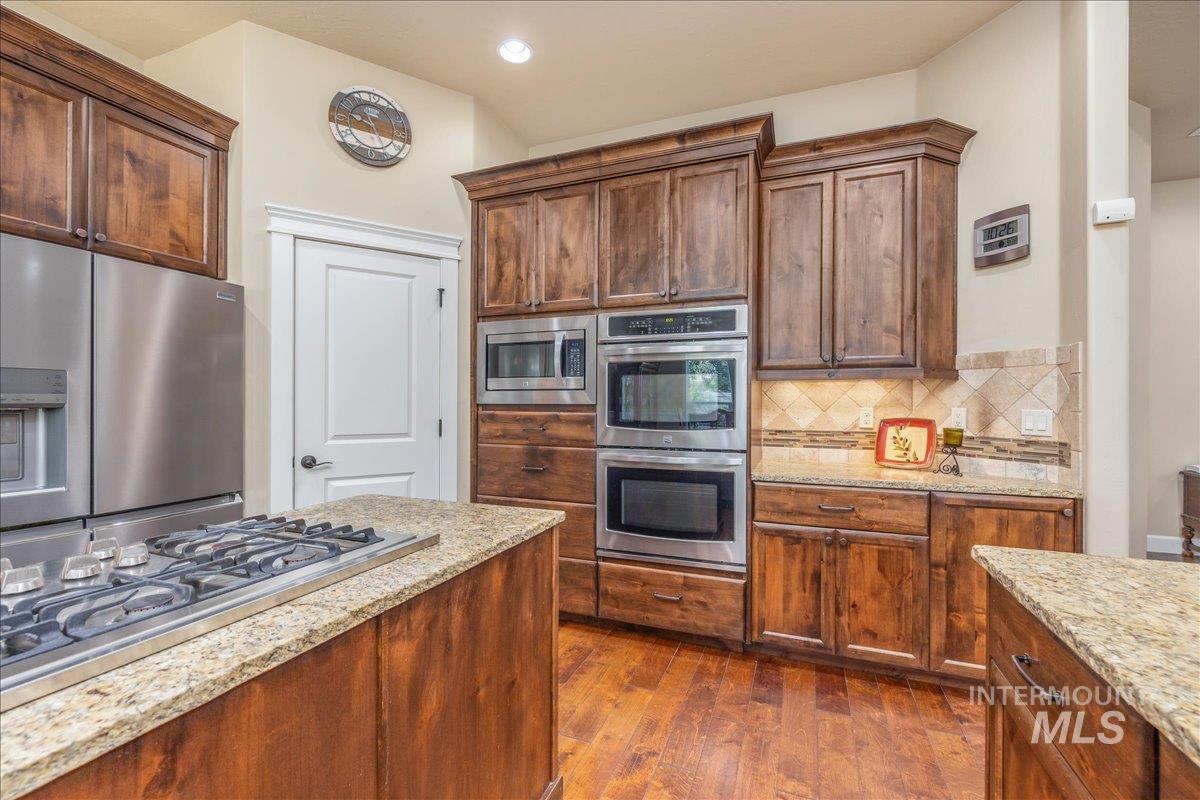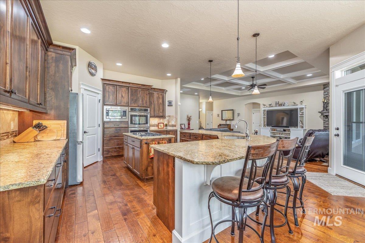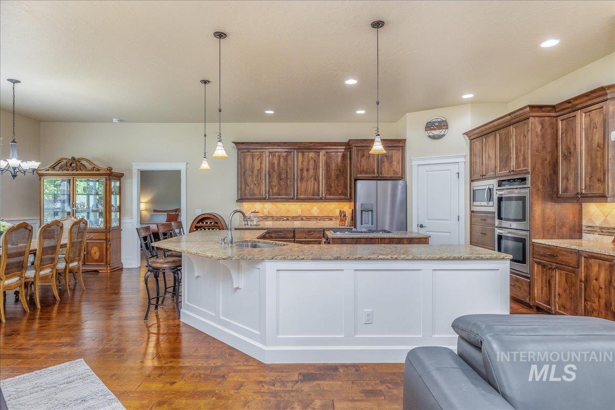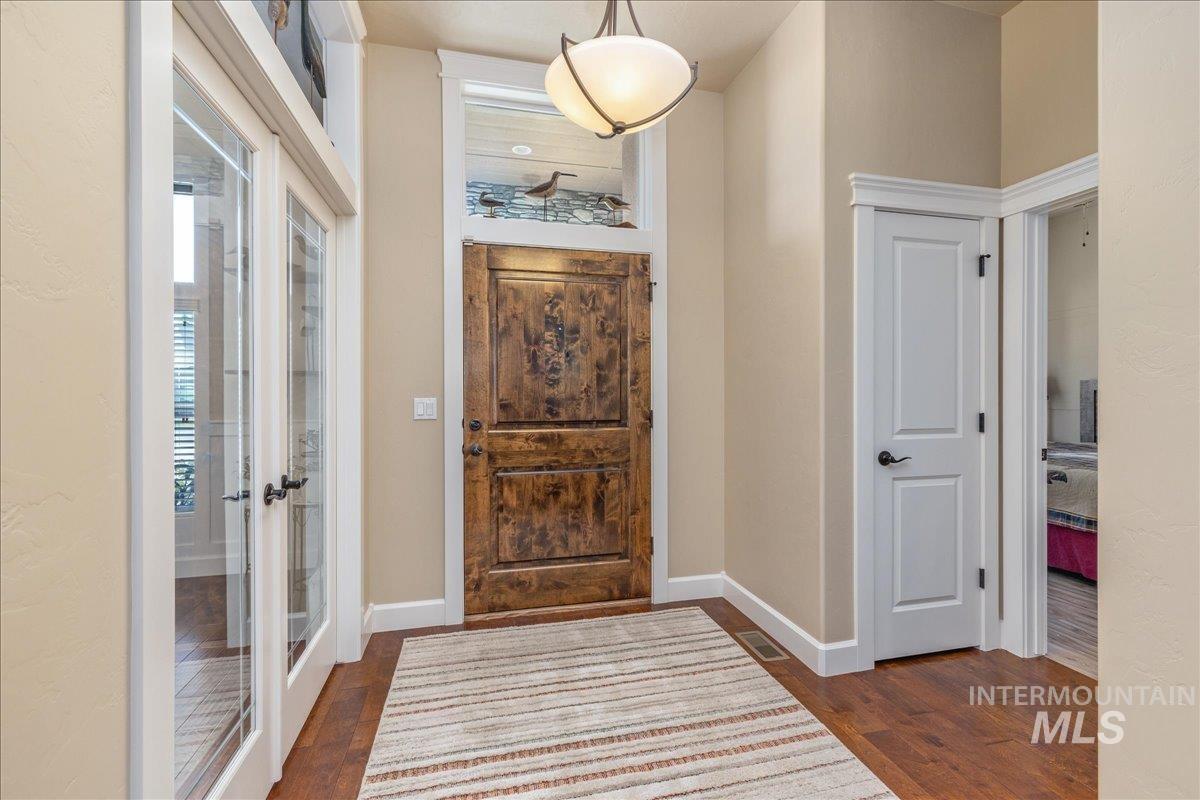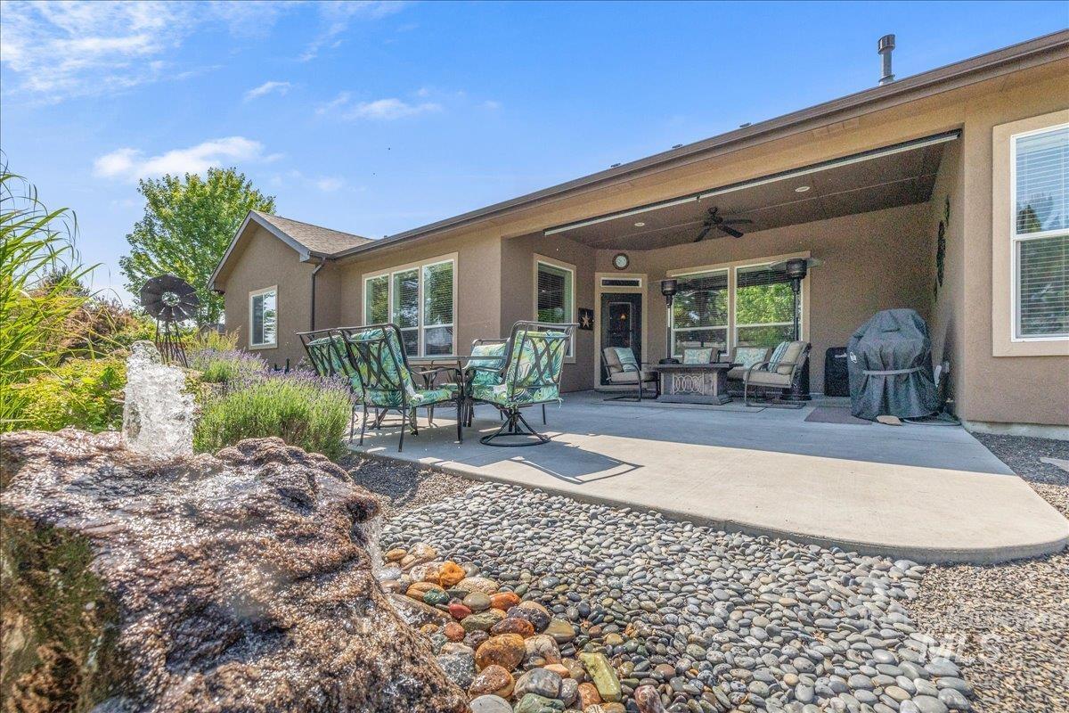 Stunning single-level home in the Lakes at Pristine Meadows. 3 bed | 3 bath | Office| Half-Acre Lot | RV Garage. This beautifully designed home offers the perfect blend of comfort, functionality, and luxury, nestled on a spacious half-acre lot with no back neighbors. Inside, you'll find 3 generous bedrooms, including 2 full ensuites with walk-in closets, 3 well appointed bathrooms, a dedicated home office perfect for remote work or hobbies, an open concept layout with spacious living and dining areas, chef's dream kitchen featuring a large island, double ovens and walk-in pantry. Step outside and enjoy a covered patio perfect for relaxing year-round, garden space and room for a pool, two storage sheds for all your tools and toys, an extra large, climate-controlled RV garage with loft storage. Additional features include a new HVAC system, water softener and whole house water filter, plumbed for central vacuum, access to a private 5-acre lake exclusive to residents--ideal for fishing and day use at the beach.