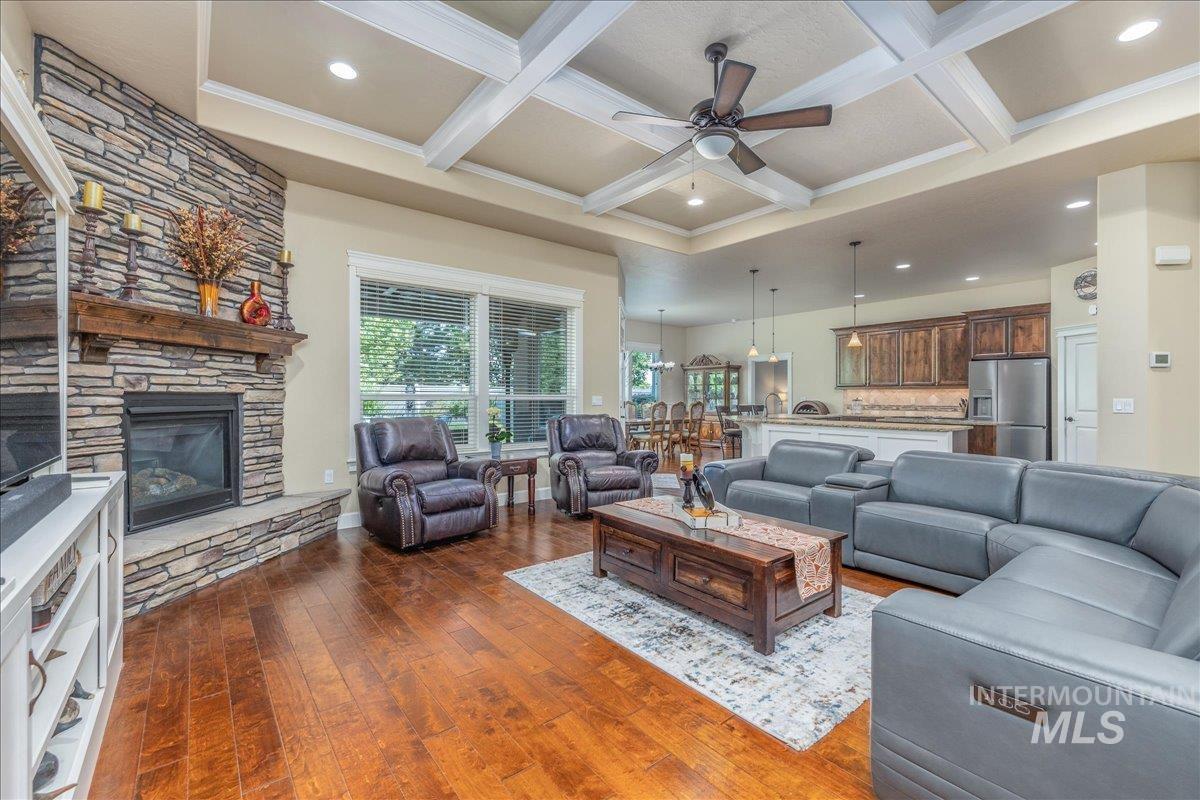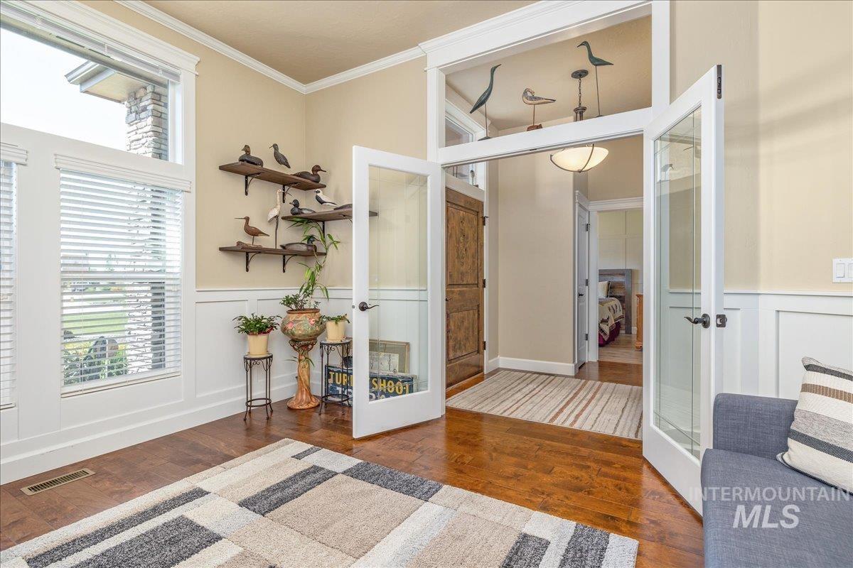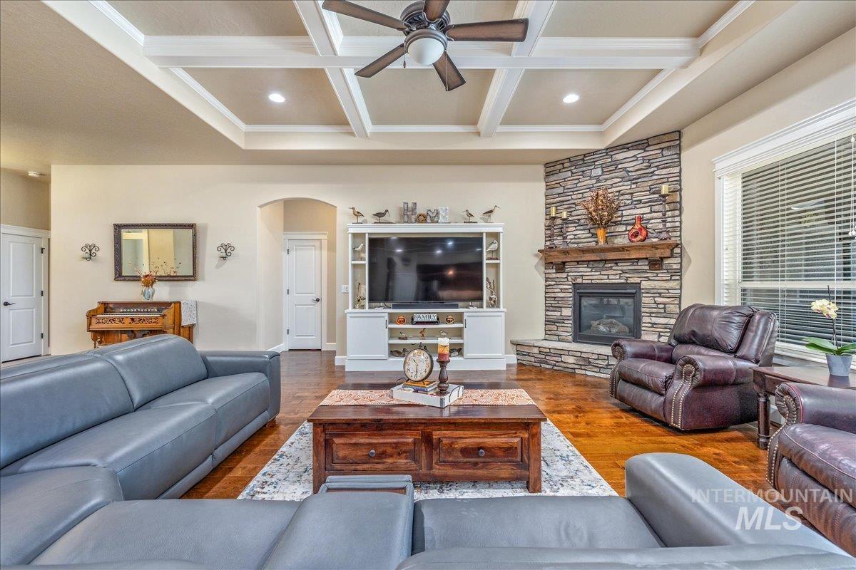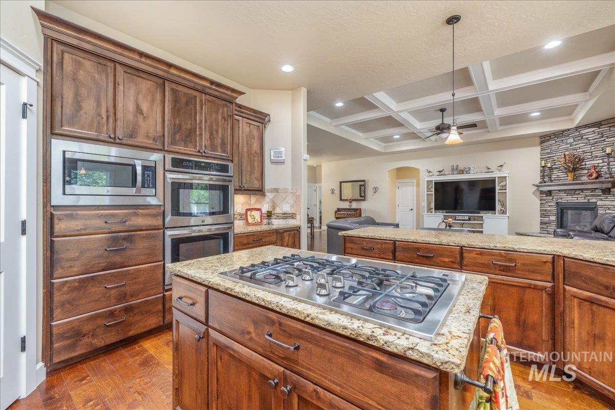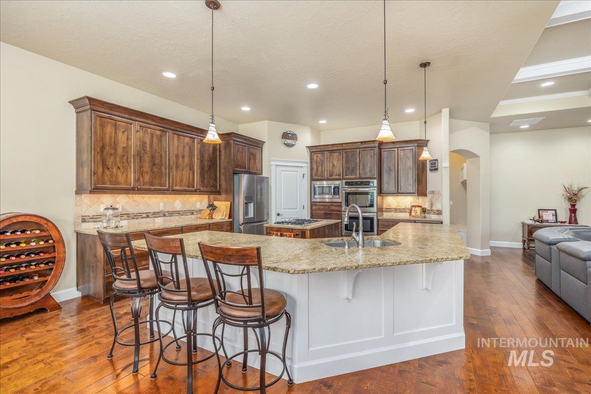 Stunning single-level home in the Lakes at Pristine Meadows. 3 bed | 3 bath | Office| Half-Acre Lot | RV Garage. This beautifully designed home offers the perfect blend of comfort, functionality, and luxury, nestled on a spacious half-acre lot with no back neighbors. Inside, you'll find 3 generous bedrooms, including 2 full ensuites with walk-in closets, 3 well appointed bathrooms, a dedicated home office perfect for remote work or hobbies, an open concept layout with spacious living and dining areas, chef's dream kitchen featuring a large island, double ovens and walk-in pantry. Step outside and enjoy a covered patio perfect for relaxing year-round, garden space and room for a pool, two storage sheds for all your tools and toys, an extra large, climate-controlled RV garage with loft storage. Additional features include a new HVAC system, water softener and whole house water filter, plumbed for central vacuum, access to a private 5-acre lake exclusive to residents--ideal for fishing and day use at the beach.