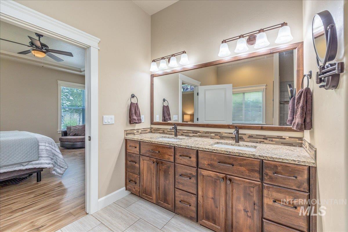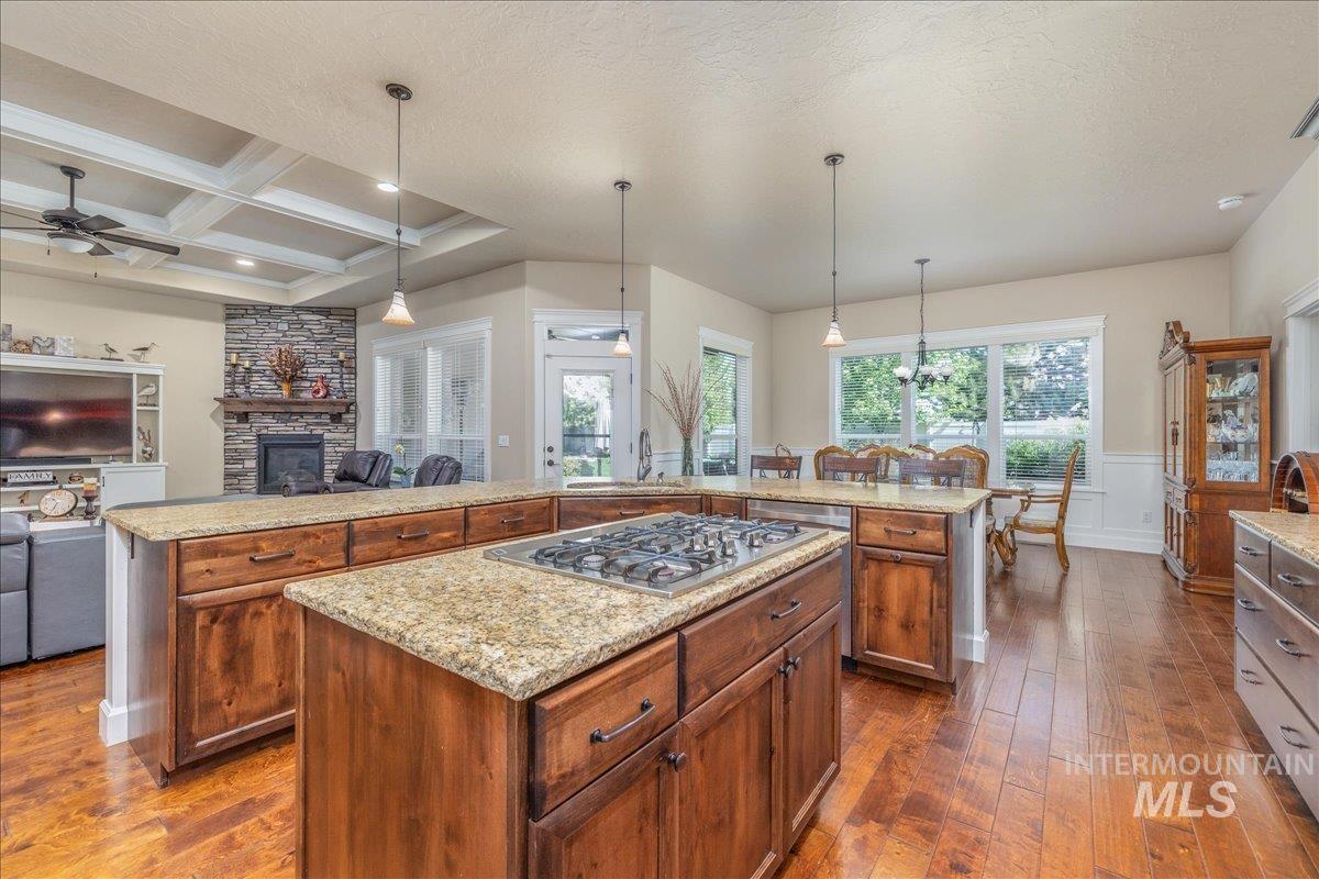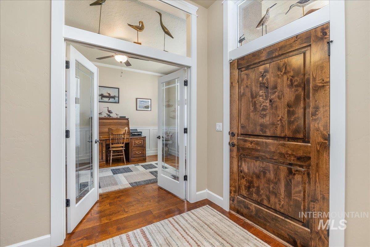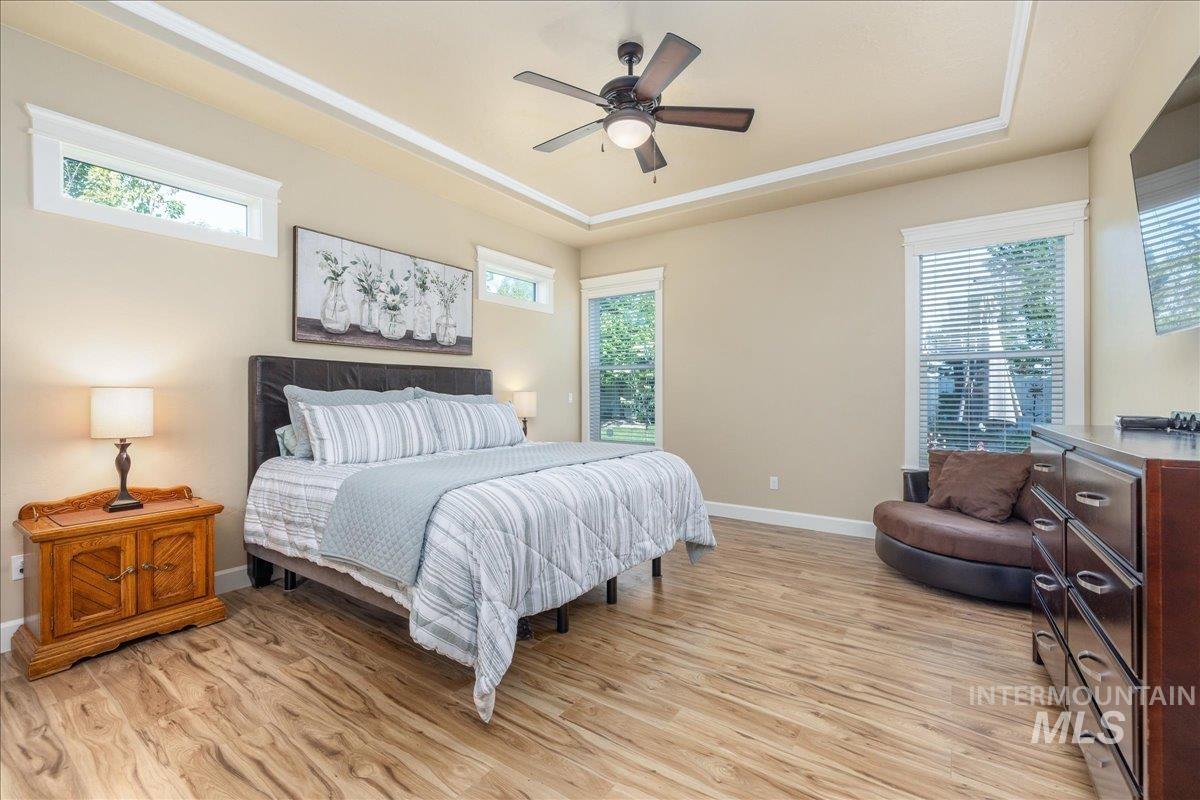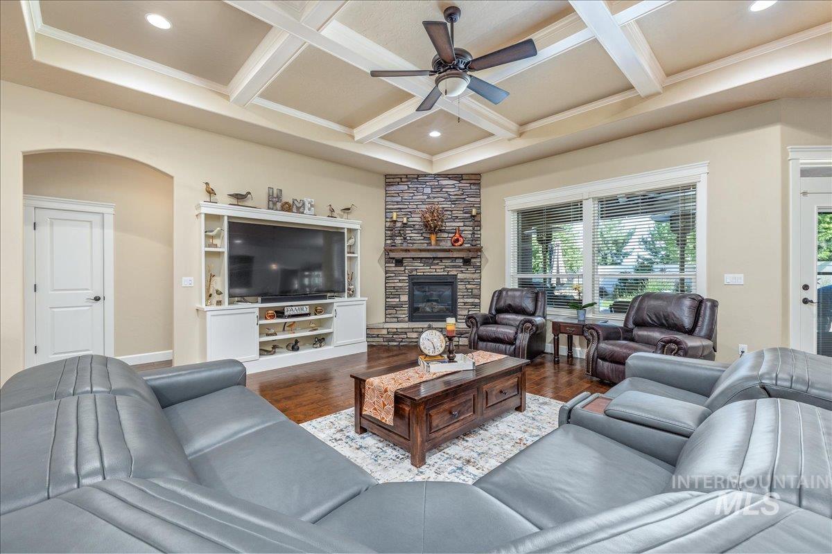 Stunning single-level home in the Lakes at Pristine Meadows. 3 bed | 3 bath | Office| Half-Acre Lot | RV Garage. This beautifully designed home offers the perfect blend of comfort, functionality, and luxury, nestled on a spacious half-acre lot with no back neighbors. Inside, you'll find 3 generous bedrooms, including 2 full ensuites with walk-in closets, 3 well appointed bathrooms, a dedicated home office perfect for remote work or hobbies, an open concept layout with spacious living and dining areas, chef's dream kitchen featuring a large island, double ovens and walk-in pantry. Step outside and enjoy a covered patio perfect for relaxing year-round, garden space and room for a pool, two storage sheds for all your tools and toys, an extra large, climate-controlled RV garage with loft storage. Additional features include a new HVAC system, water softener and whole house water filter, plumbed for central vacuum, access to a private 5-acre lake exclusive to residents--ideal for fishing and day use at the beach.