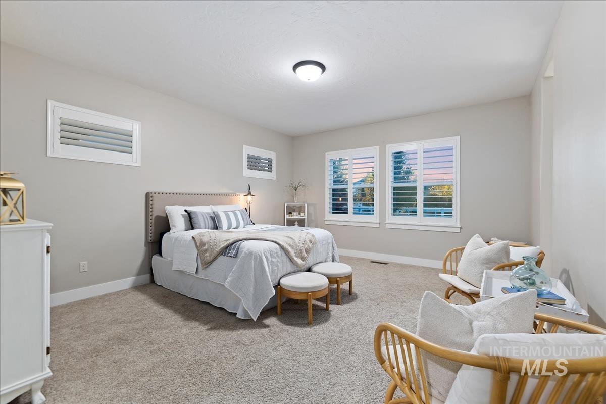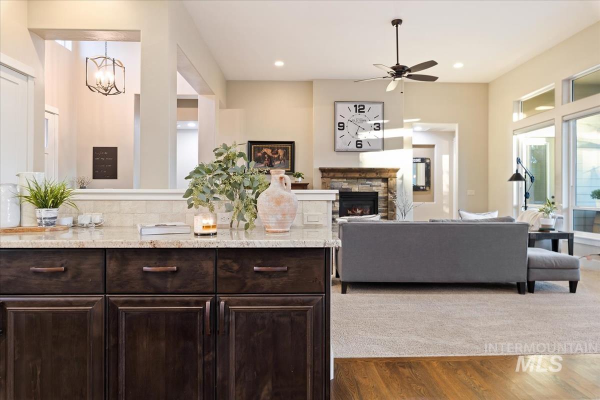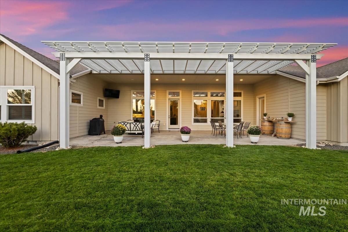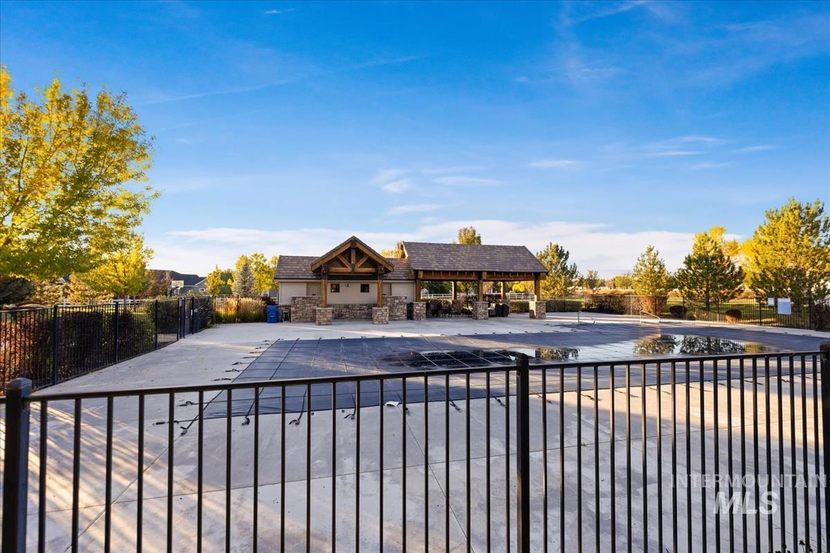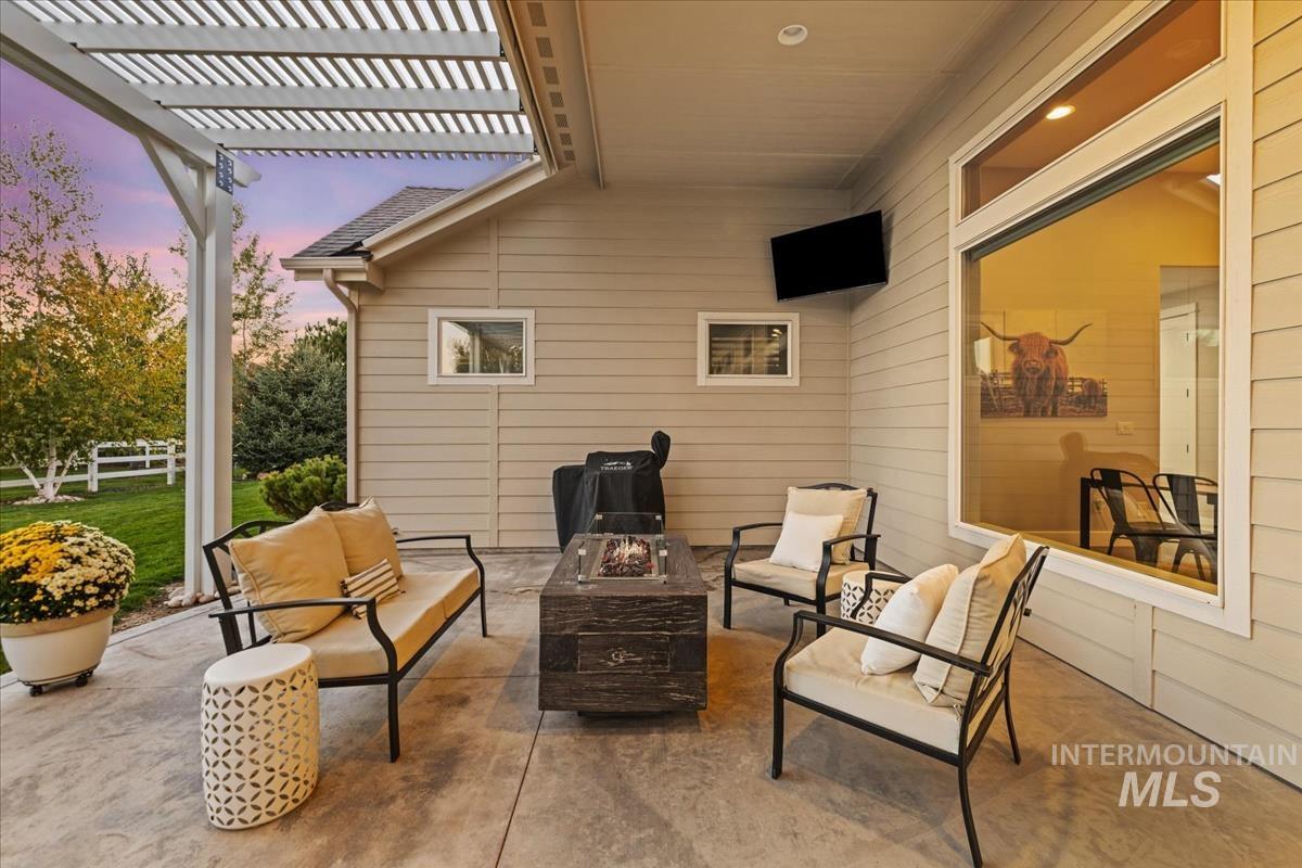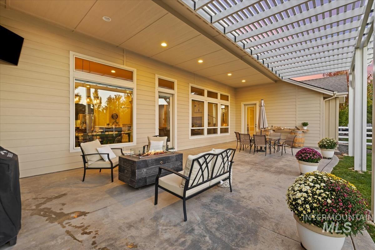 Enjoy sweeping views of the Idaho sunset from the back porch in this better-than new custom built home in Henry's Fork neighborhood. The large open concept living space is perfect for comfortable every day living as well as entertaining! Live in style both indoors & outdoors on this homesite that backs onto common area with beautiful mature foliage. New large 12' tall pergola & ample patio space. The home features 4 huge bedrooms and 4 bathrooms, w/ the 4th bedroom situated away from the others, & convenient to a full bath. It's been used as an office or guest space. Jack-and-jill bathroom with separate vanity areas. Office space around the corner from kitchen, & large bonus room w/ full bathroom. Lg. primary bedroom w/ arbor door for back patio access. Primary bathroom w/ dual vanities, garden soaker tub, tile walk-in shower. Home also includes remote controlled blinds, plantation shutters, a central vacuum system, an oversized three car garage, & a garden shed. Henry's Fork has a pool and walking paths.