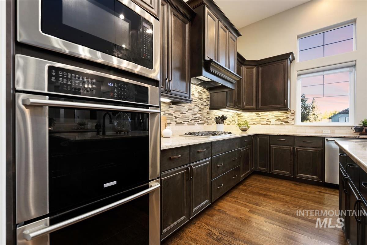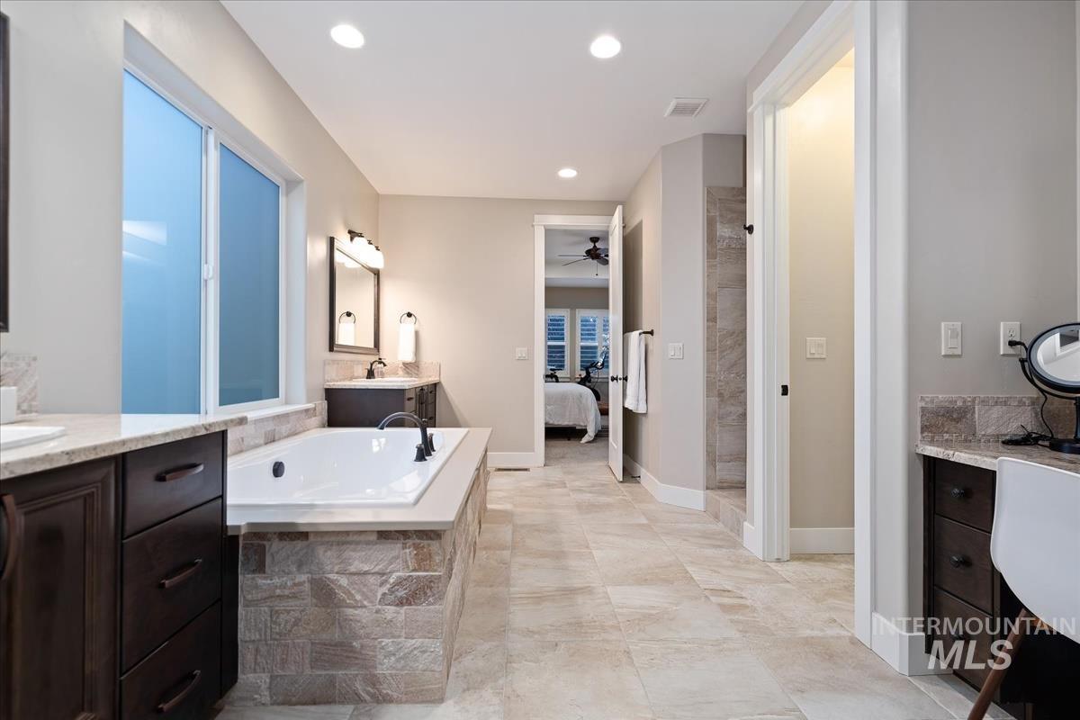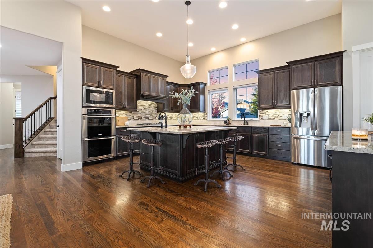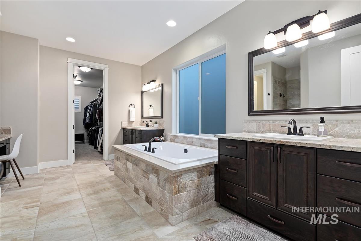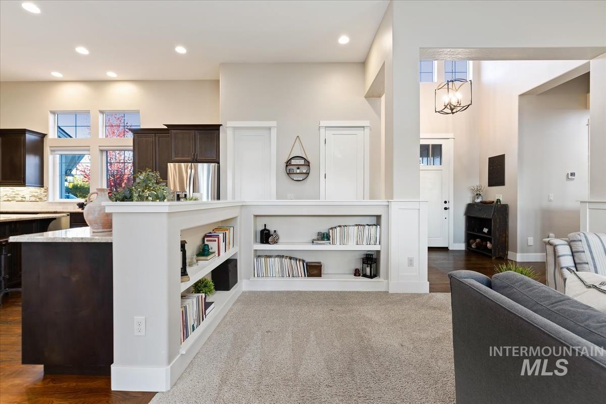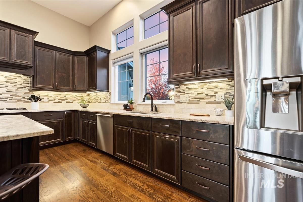 Enjoy sweeping views of the Idaho sunset from the back porch in this better-than new custom built home in Henry's Fork neighborhood. The large open concept living space is perfect for comfortable every day living as well as entertaining! Live in style both indoors & outdoors on this homesite that backs onto common area with beautiful mature foliage. New large 12' tall pergola & ample patio space. The home features 4 huge bedrooms and 4 bathrooms, w/ the 4th bedroom situated away from the others, & convenient to a full bath. It's been used as an office or guest space. Jack-and-jill bathroom with separate vanity areas. Office space around the corner from kitchen, & large bonus room w/ full bathroom. Lg. primary bedroom w/ arbor door for back patio access. Primary bathroom w/ dual vanities, garden soaker tub, tile walk-in shower. Home also includes remote controlled blinds, plantation shutters, a central vacuum system, an oversized three car garage, & a garden shed. Henry's Fork has a pool and walking paths.