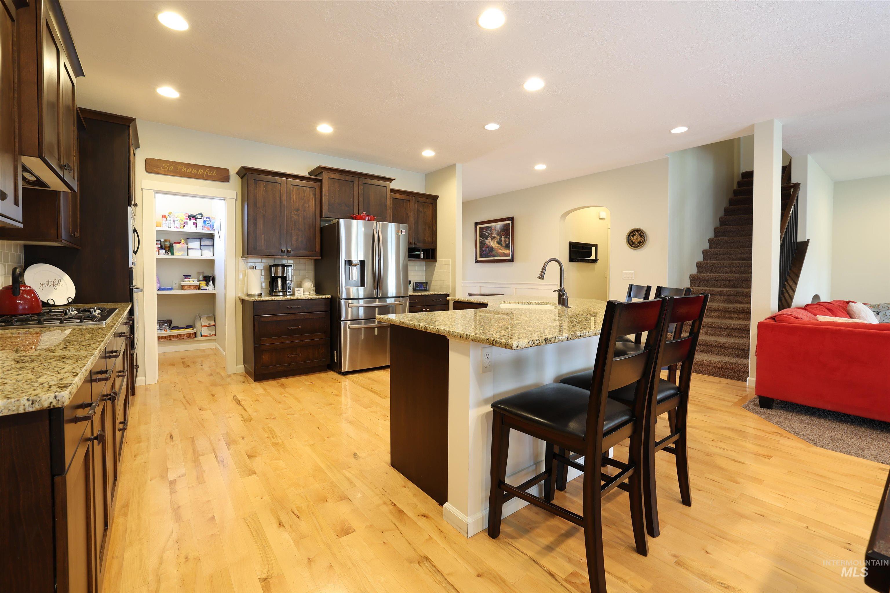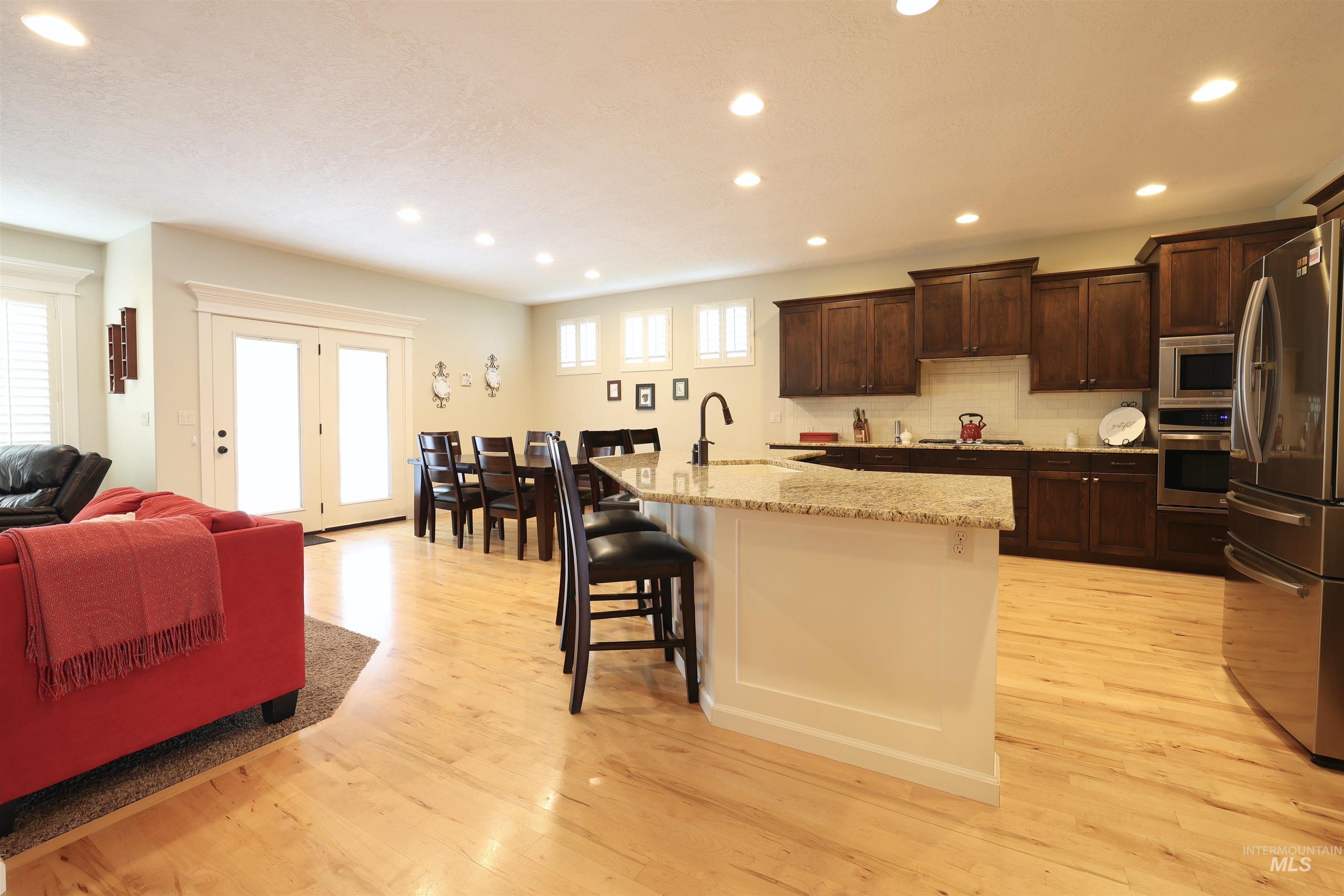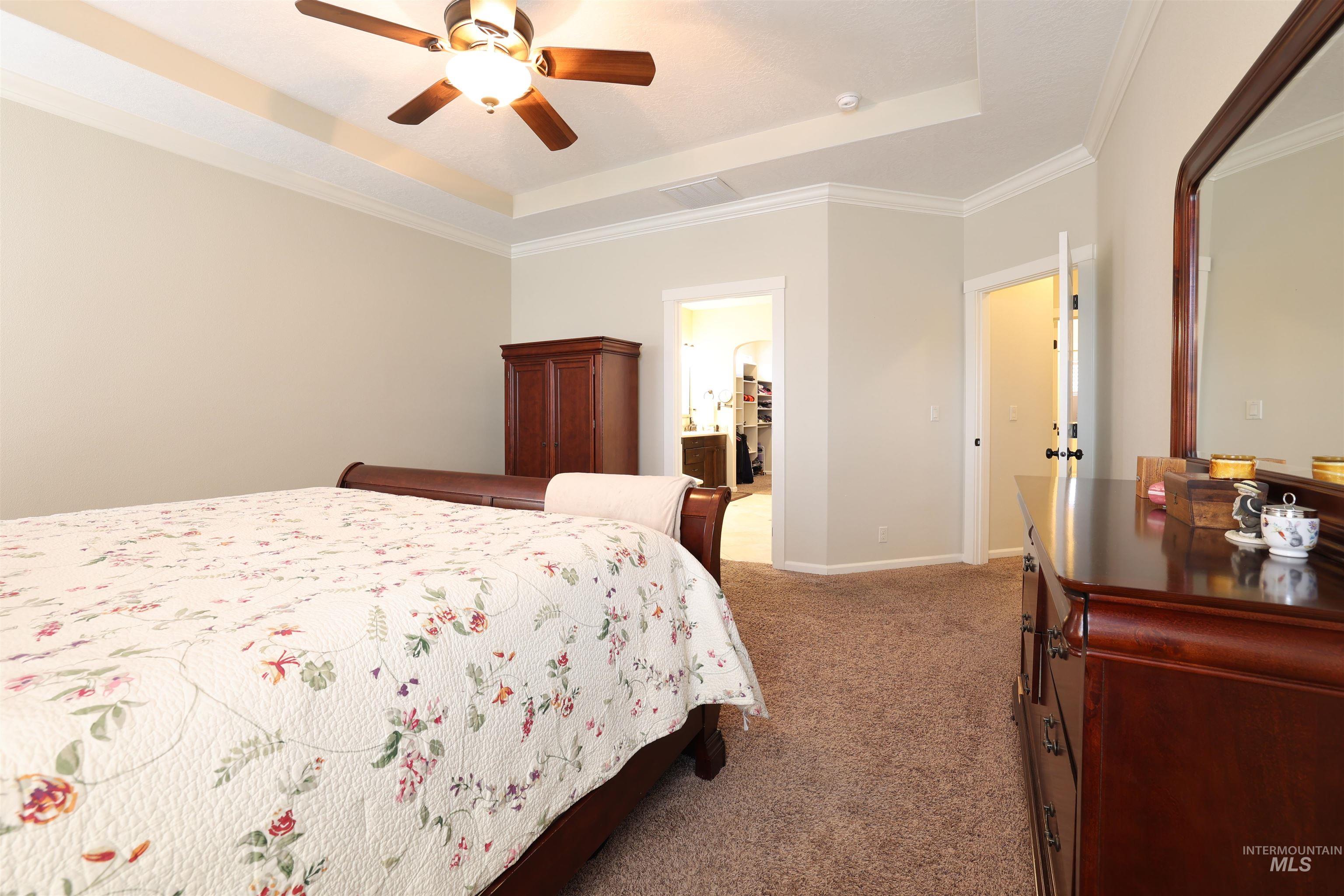 $20,000 Price Improvement on this popular floor plan in the Bridgetower Subdivision! 5 Bedroom, 3 1/2 Bath, 3867 SF, plus Bonus Room and Office (or 6th Bedroom). Main Level Guest Suite. Open Living Area with large Kitchen & Dining area off of Great Room. Flex Room / Private sitting area / Nursery hidden behind master closet and extra storage room off of upstairs laundry room. See 3D TOUR below! Enjoy 2 Community Pools, Multiple Parks, miles of Walking Paths (along a stream!), Community Club House and Hunter Elementary right in Bridgetower! Sawtooth Middle and Brand New Owyhee High School with full retail within minutes (Costco, Winco, Wal-mart, Fred Meyer, and others) Great Location! Huge Yard. Come make this one yours!