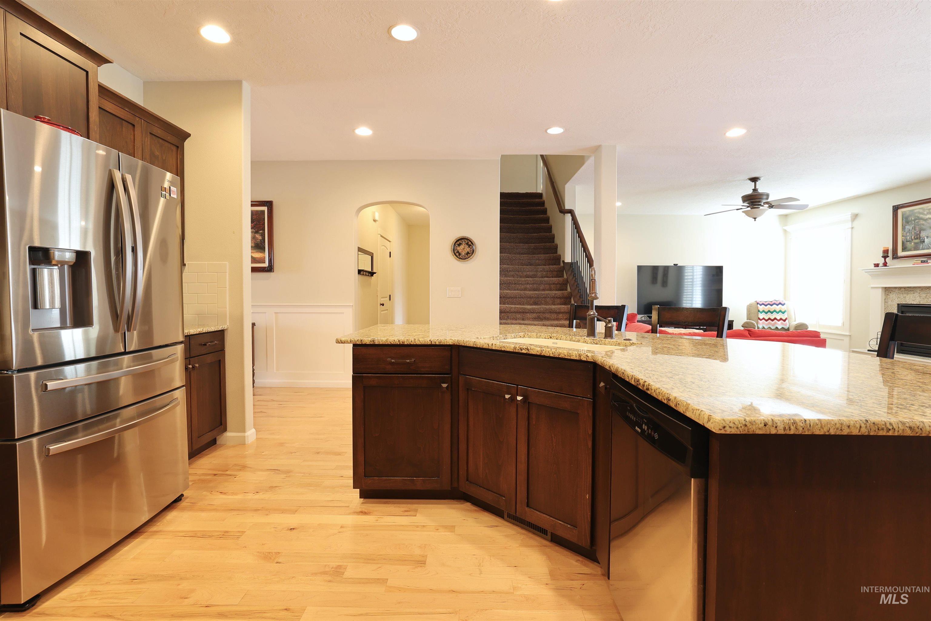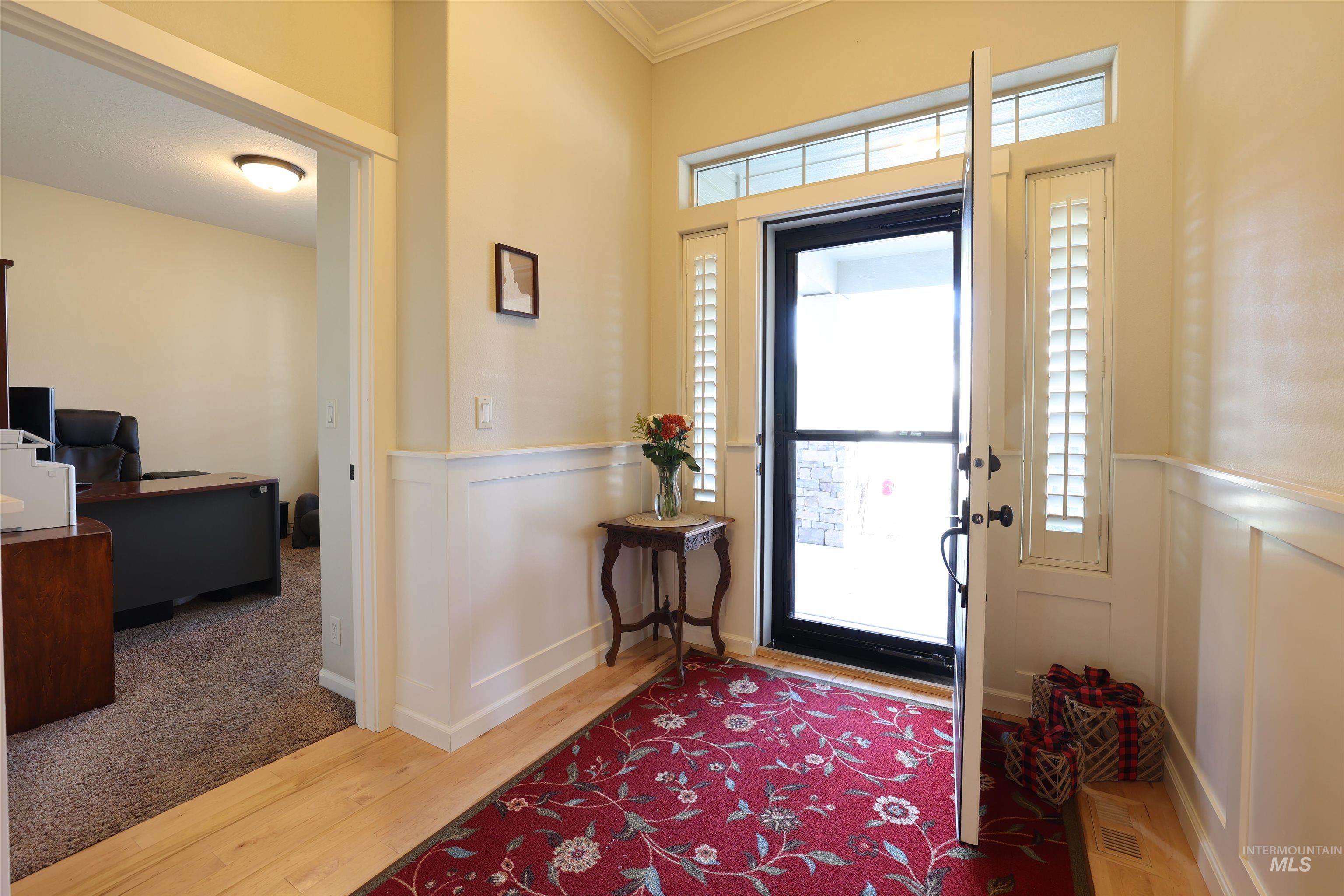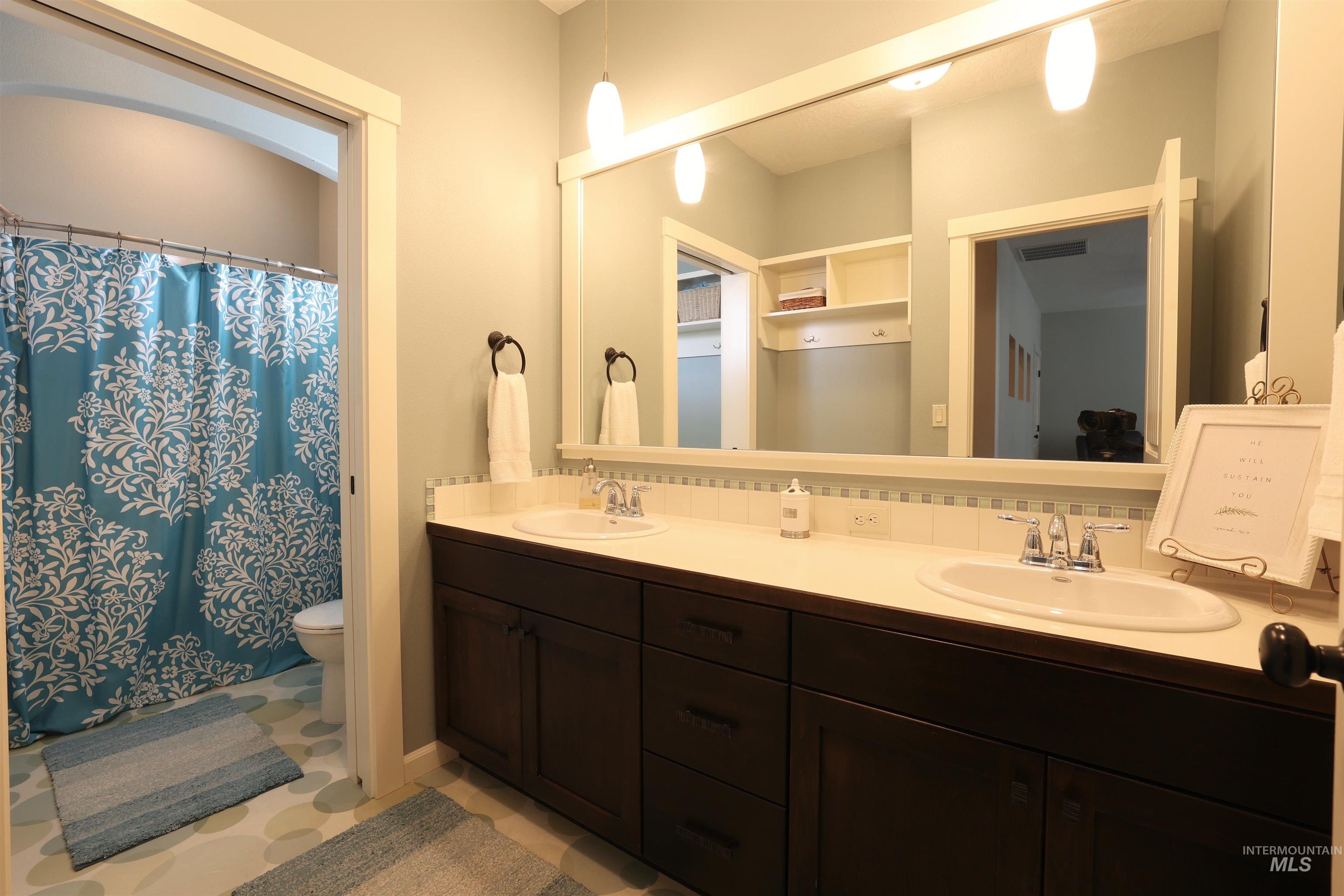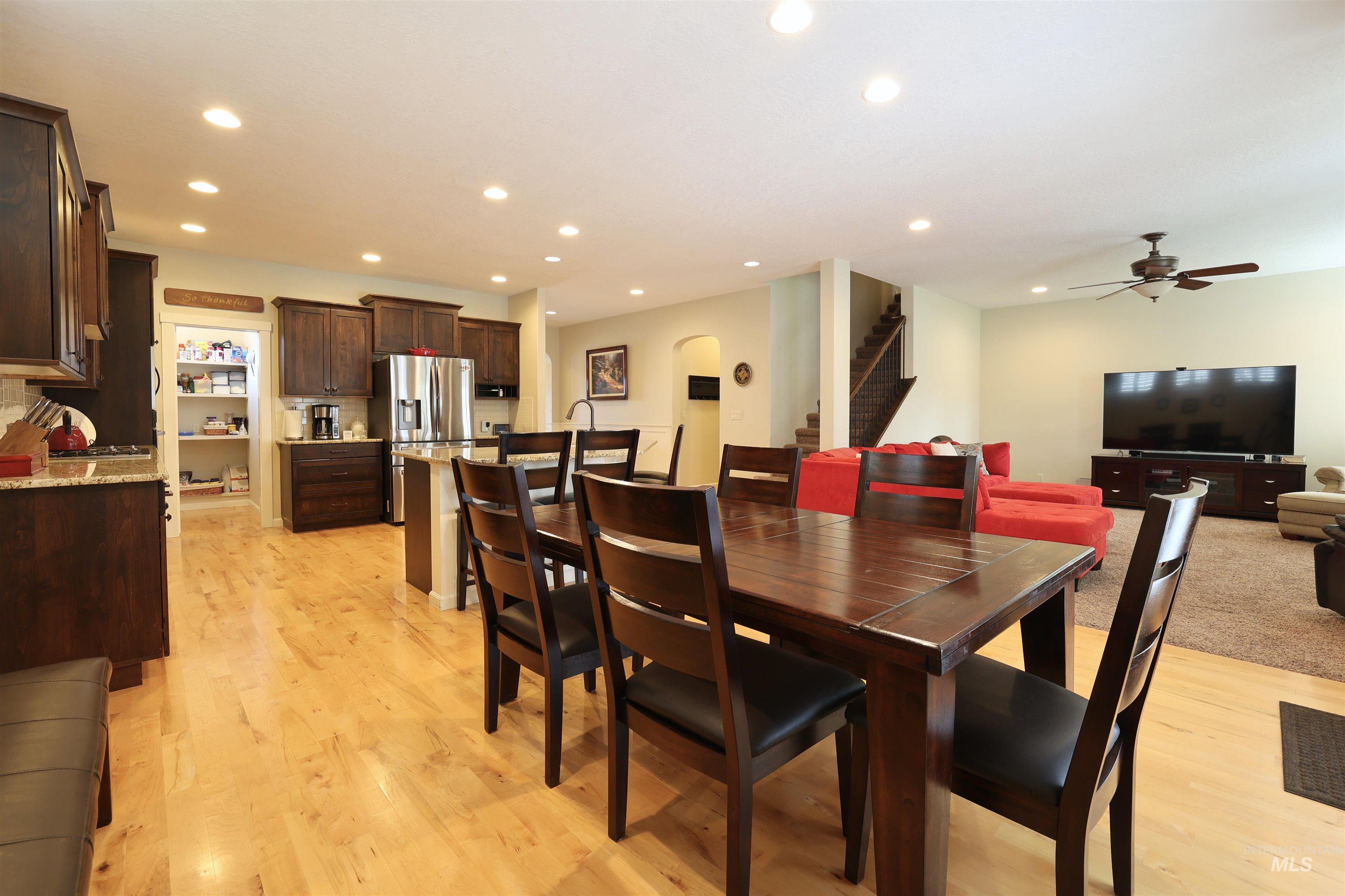 $20,000 Price Improvement on this popular floor plan in the Bridgetower Subdivision! 5 Bedroom, 3 1/2 Bath, 3867 SF, plus Bonus Room and Office (or 6th Bedroom). Main Level Guest Suite. Open Living Area with large Kitchen & Dining area off of Great Room. Flex Room / Private sitting area / Nursery hidden behind master closet and extra storage room off of upstairs laundry room. See 3D TOUR below! Enjoy 2 Community Pools, Multiple Parks, miles of Walking Paths (along a stream!), Community Club House and Hunter Elementary right in Bridgetower! Sawtooth Middle and Brand New Owyhee High School with full retail within minutes (Costco, Winco, Wal-mart, Fred Meyer, and others) Great Location! Huge Yard. Come make this one yours!