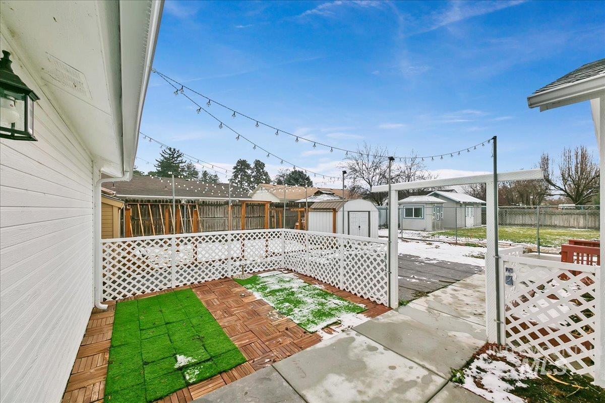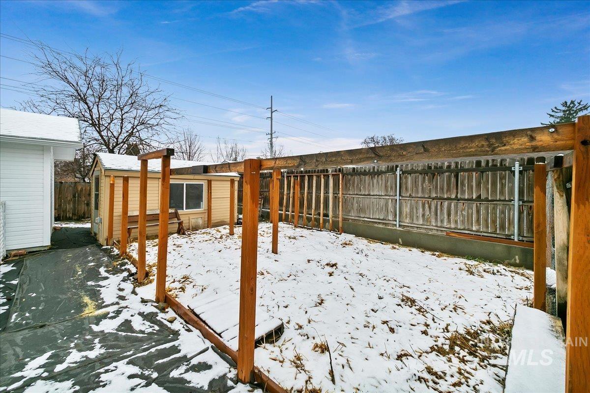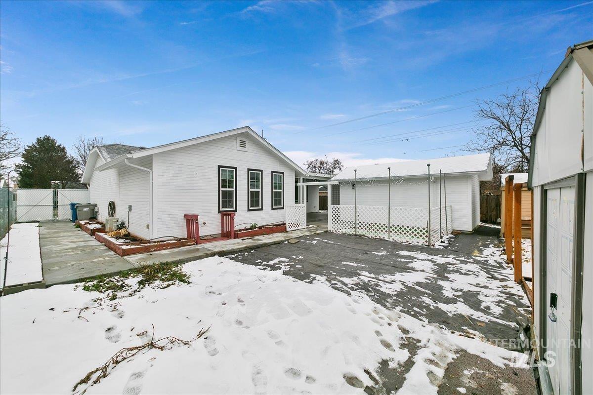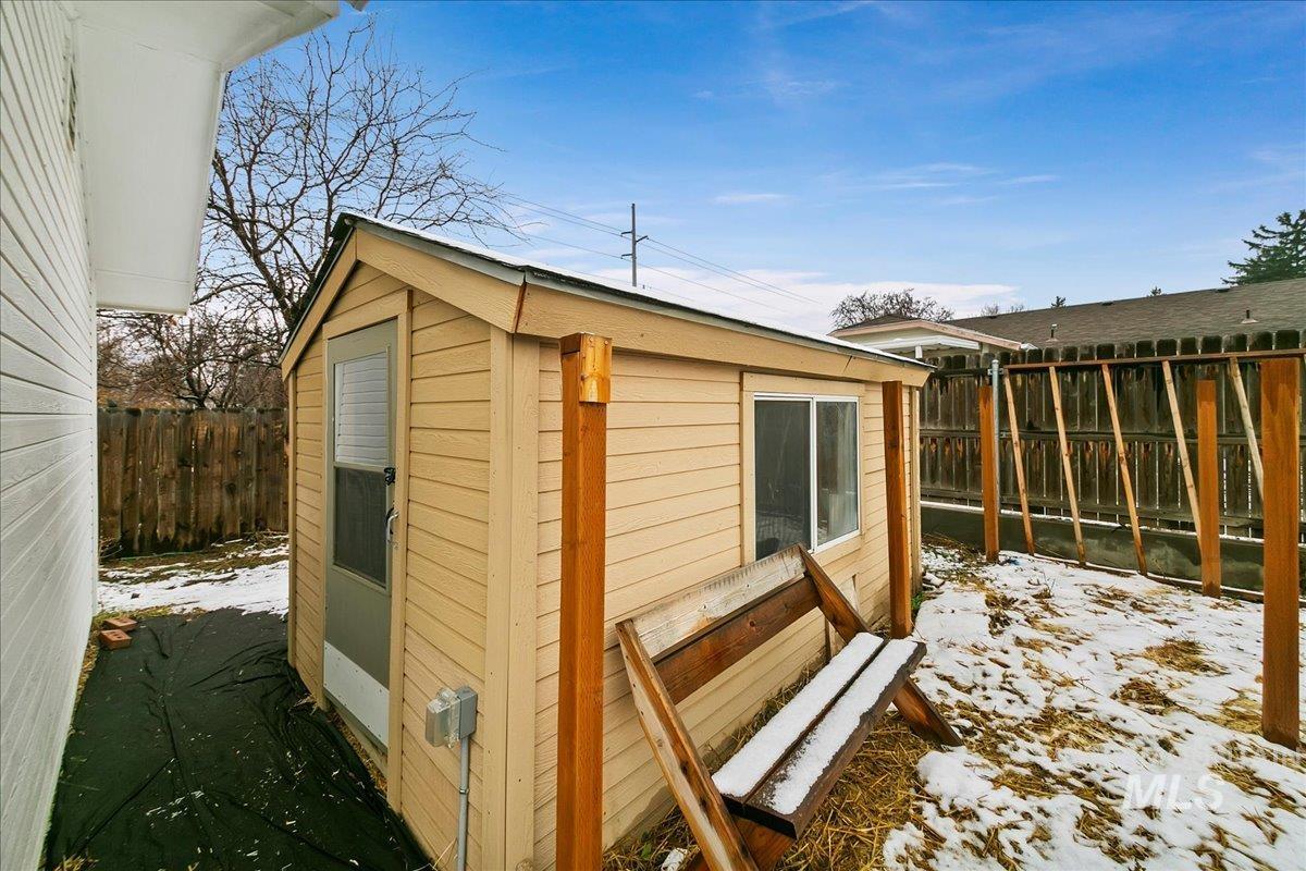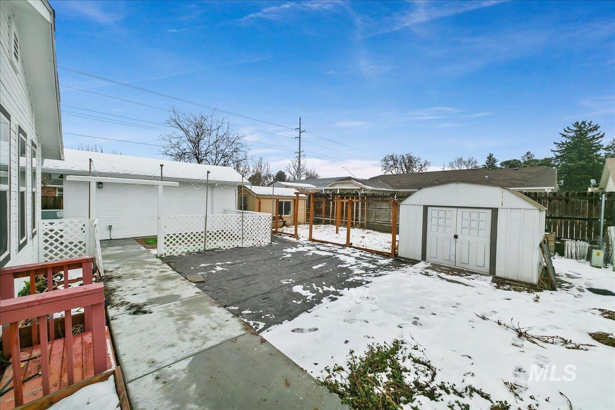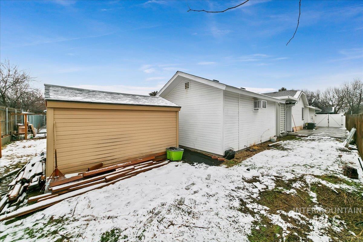 Recently Updated home in quiet centrally located neighborhood in West Boise. This 3 bedroom 2 bath single level home will not disappoint with many recent updates. Vinyl plank floor through the main living area and Kitchen, along with granite countertops, new cabinets, stainless appliances and a fully remodeled kitchen. A recent addition also added off the Kitchen with ductless mini split, vinyl floors, and a 13x5 walk through pantry with ample space. Outside you will find a newly built covered patio a perfect addition to this large east facing backyard. You will also find multiple outbuildings included a brand new one fully finished with power, heating and cooling, perfect for your hobbies, an office or extra living space. Exterior has been recently painted and new concrete poured all around the house for easy access around the property. This West Boise neighborhood is full of mature vegetation and offers easy access to main thoroughfares and regional cycling routes with parks and shopping only mins.
