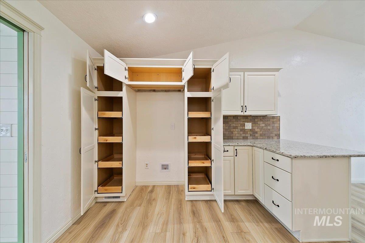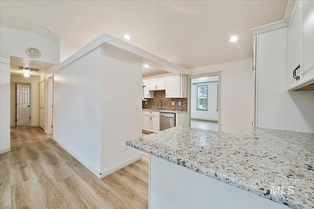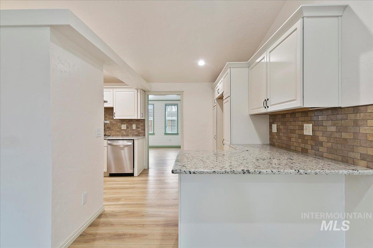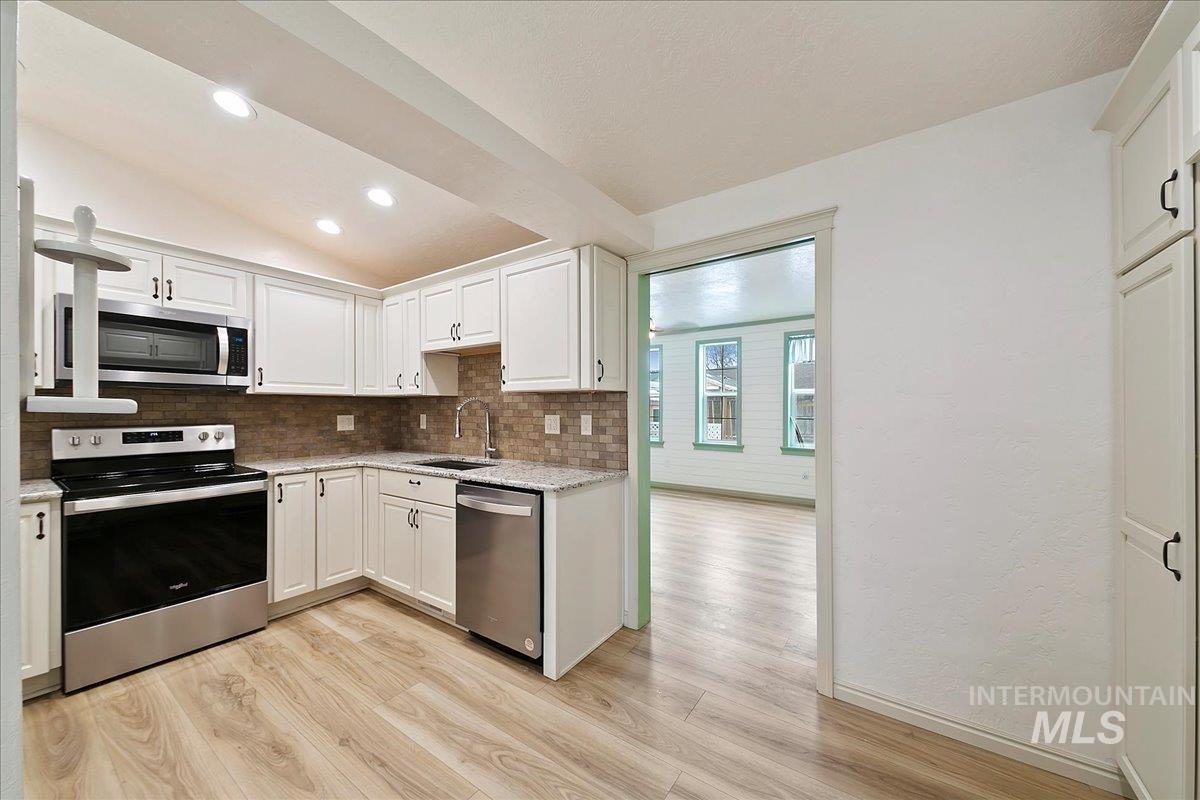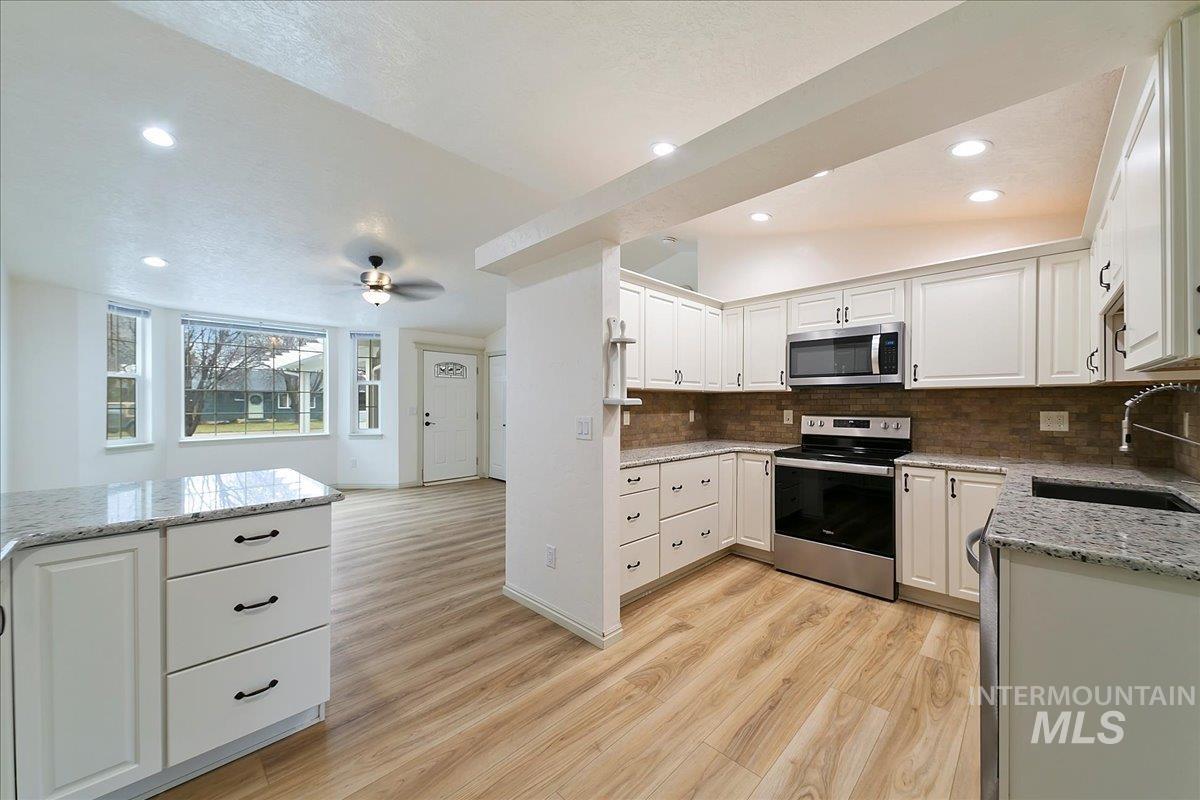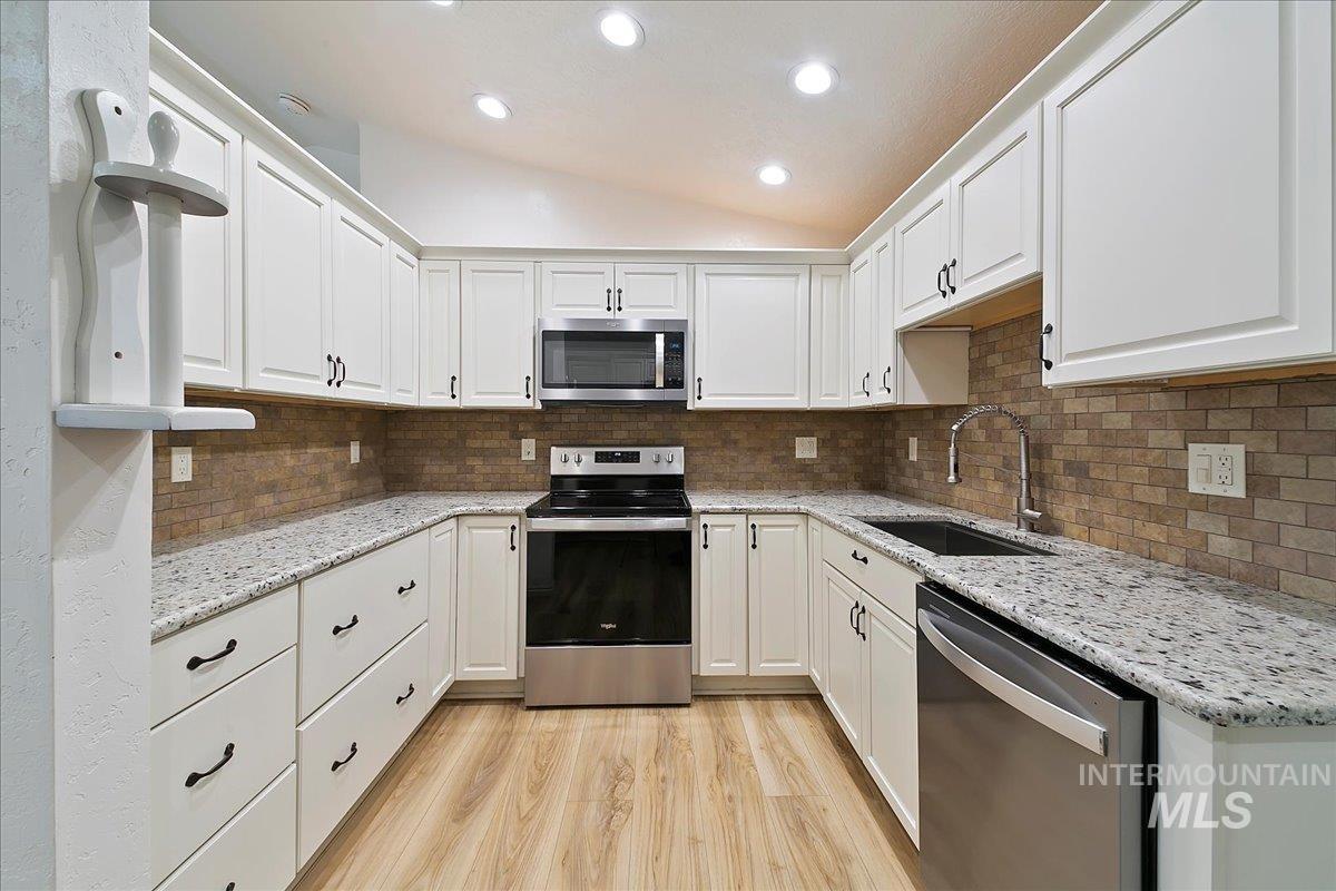 Recently Updated home in quiet centrally located neighborhood in West Boise. This 3 bedroom 2 bath single level home will not disappoint with many recent updates. Vinyl plank floor through the main living area and Kitchen, along with granite countertops, new cabinets, stainless appliances and a fully remodeled kitchen. A recent addition also added off the Kitchen with ductless mini split, vinyl floors, and a 13x5 walk through pantry with ample space. Outside you will find a newly built covered patio a perfect addition to this large east facing backyard. You will also find multiple outbuildings included a brand new one fully finished with power, heating and cooling, perfect for your hobbies, an office or extra living space. Exterior has been recently painted and new concrete poured all around the house for easy access around the property. This West Boise neighborhood is full of mature vegetation and offers easy access to main thoroughfares and regional cycling routes with parks and shopping only mins.
