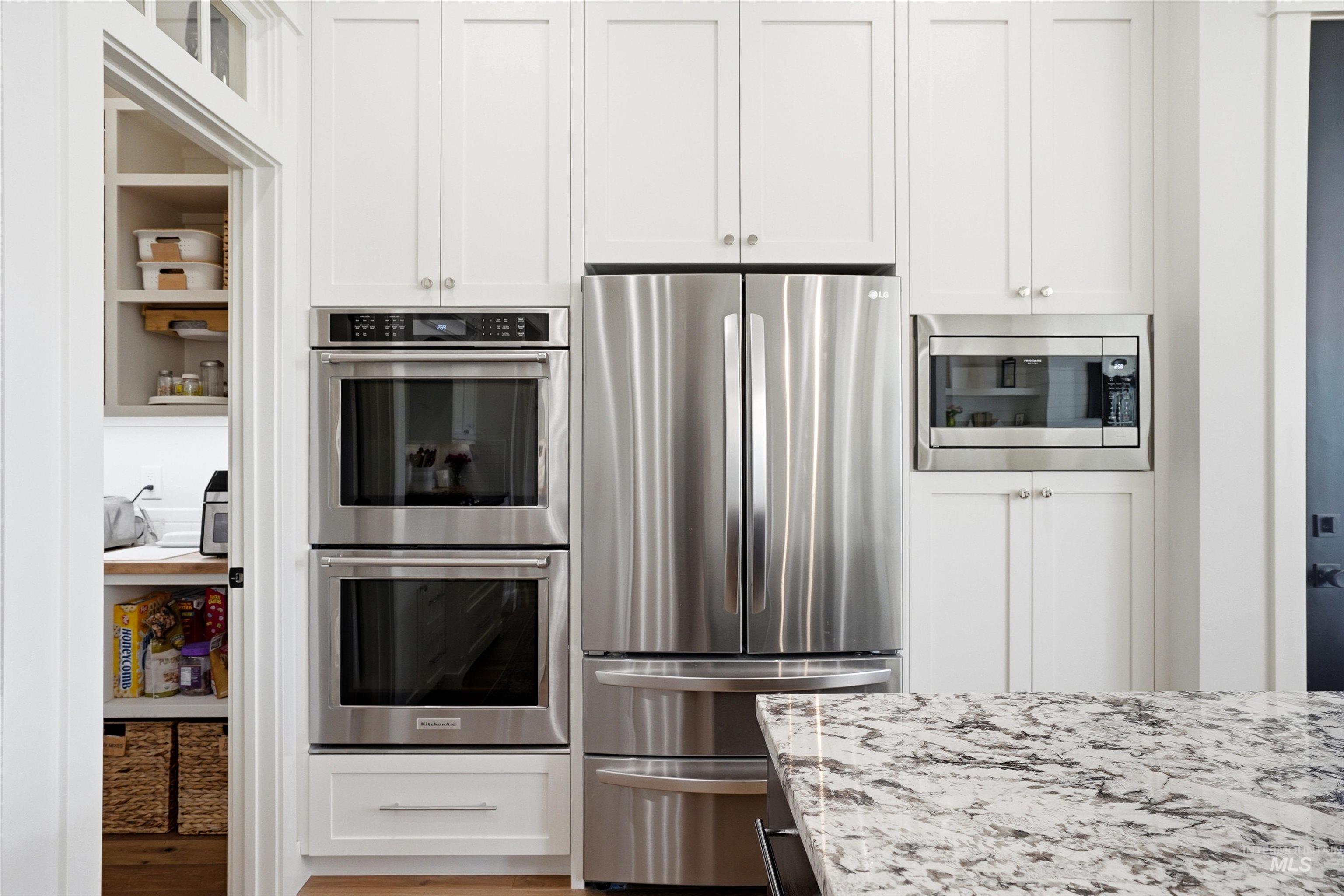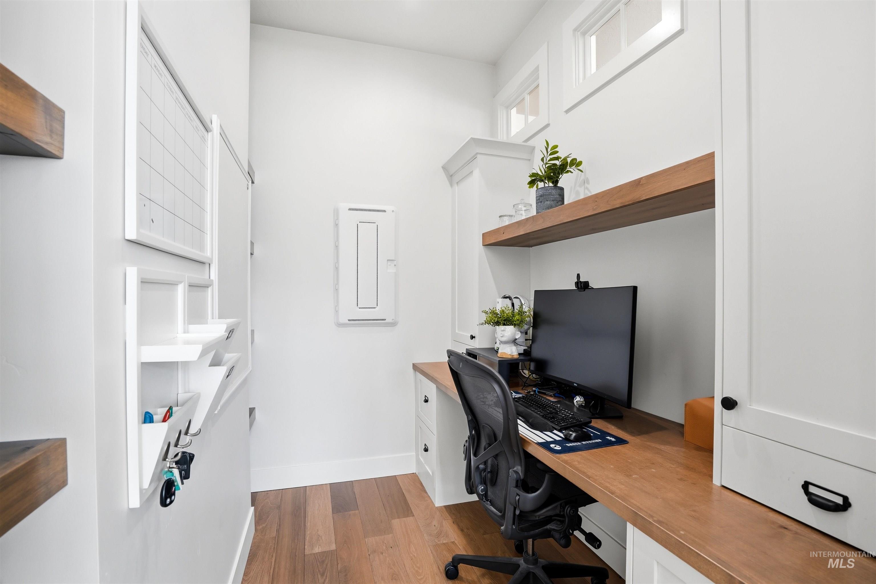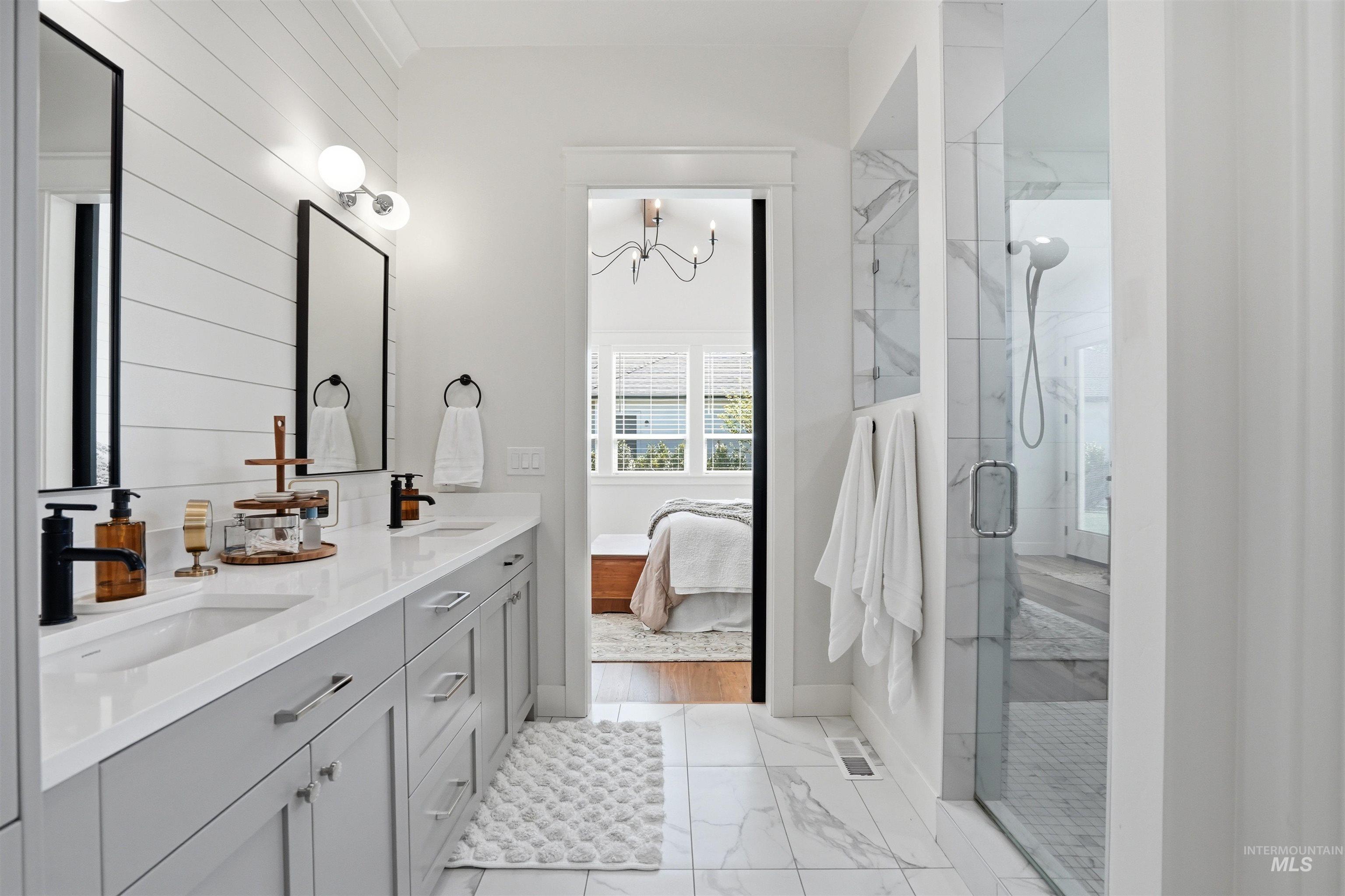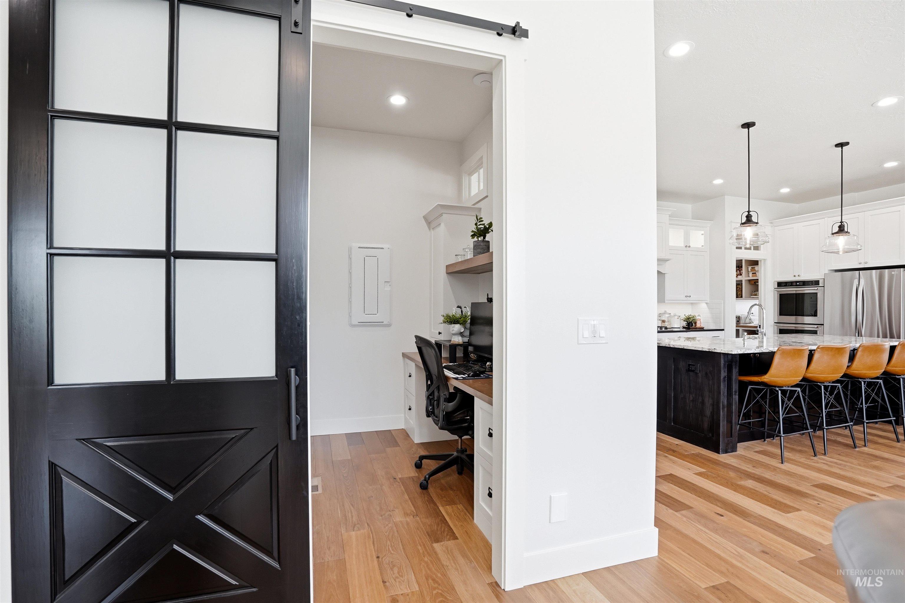 Custom Harbor Homes build in Eagle's sought-after Legacy subdivision! This thoughtfully designed home features a gourmet kitchen with granite countertops, gas range, double ovens, and a charming brick-accented banquette with built-in seating for up to 10--perfect for gathering. Custom shiplap and board-and-batten feature walls add warmth and character throughout. Vaulted ceilings elevate the main living area, primary suite (with beam detail), and one secondary bedroom, creating a bright, open feel. The home also includes a convenient pocket office for work or organization. Enjoy outdoor living on the covered patio with a vaulted wood shiplap ceiling. Additional highlights include a whole-home water filtration system, HERS energy certification, and a 3-car garage with a tandem bay. Located in Legacy, offering an executive golf course, miles of walking paths, 3 pools, parks, and a soccer field--this is Idaho living at its best!