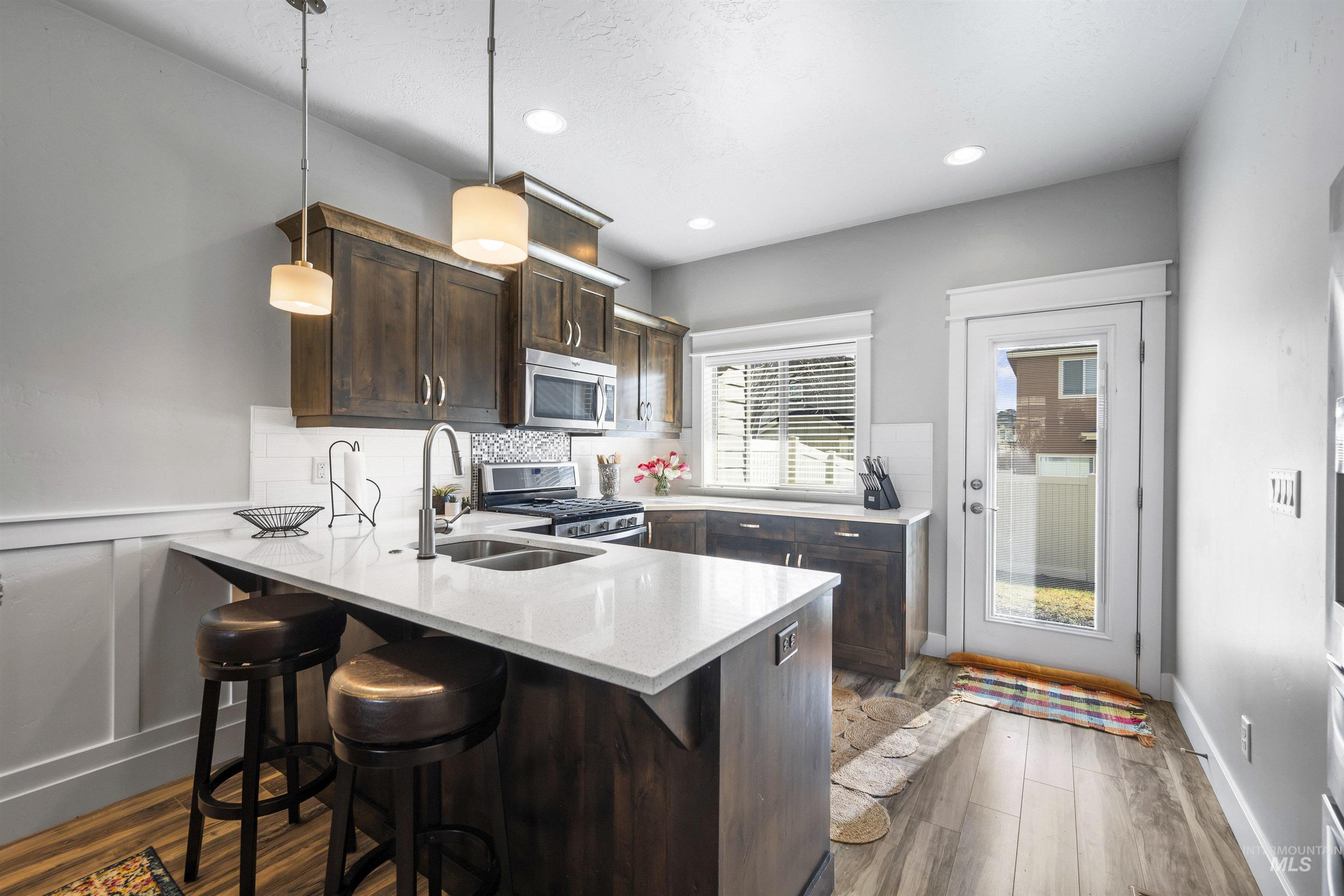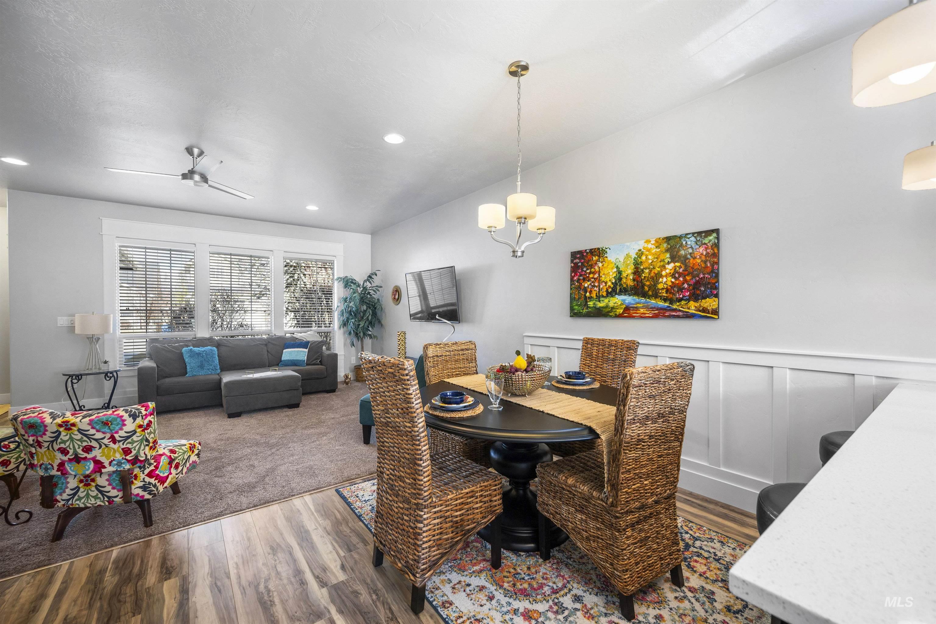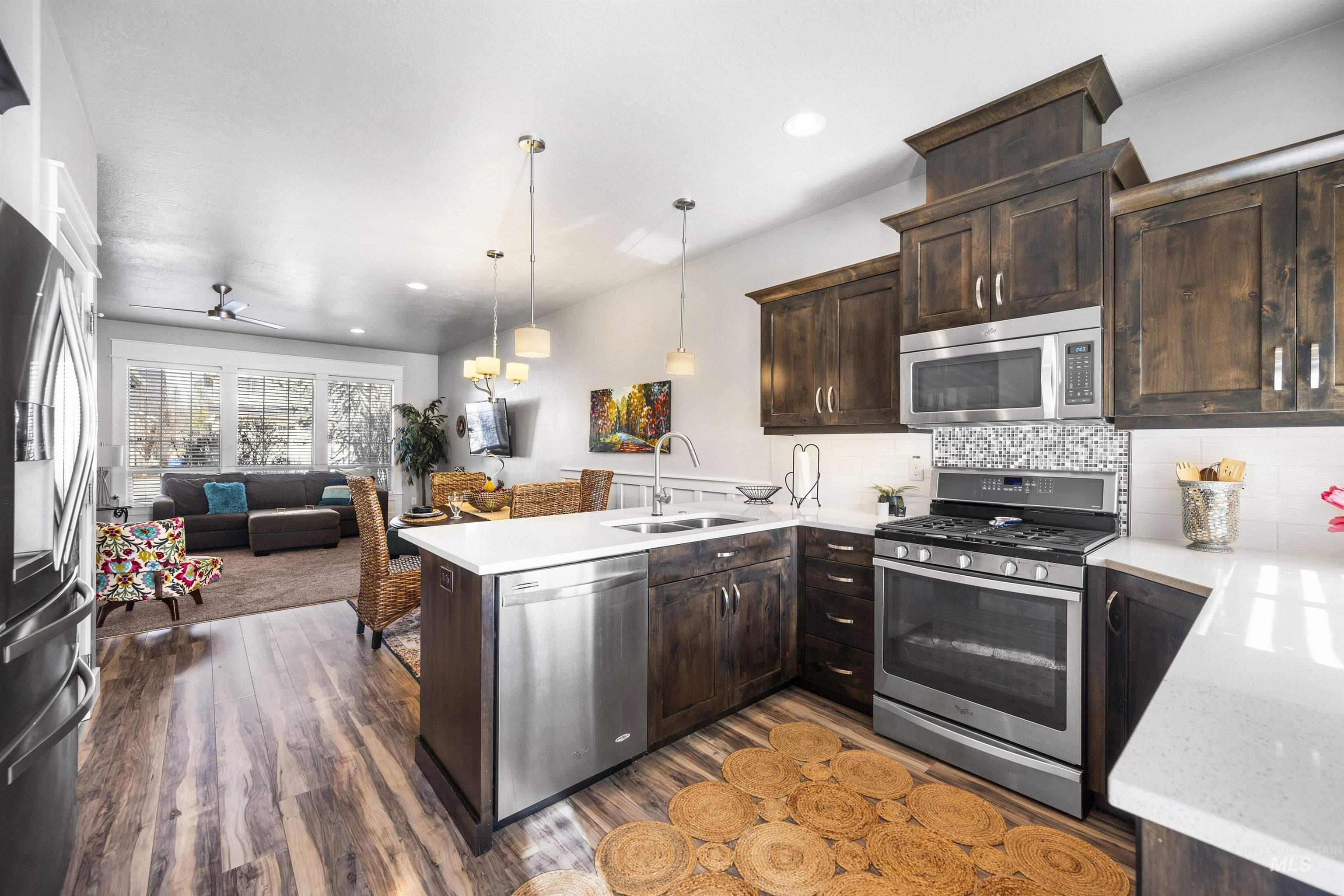 Nestled in the sought-after South Creek neighborhood, this stunning townhome offers modern comfort and style on a single level. The inviting kitchen is a chef's dream, featuring elegant quartz countertops, custom alder cabinetry, and sleek stainless steel appliances. The spacious primary bedroom is a retreat of its own, complete with a generous walk-in closet that provides ample storage for your wardrobe and beyond. The ensuite bathroom offers dual vanities and a convenient linen closet, perfect for keeping everything organized. The two-car garage harbors your vehicles and the complete package offers a worry free, lock-and-leave lifestyle. Step outside to a serene covered patio--ideal for outdoor dining, entertaining, or simply unwinding in the fresh air. The community pool is a fantastic added feature, offering a refreshing escape and a chance to connect with friendly neighbors. With its combination of convenience, luxury, and charm, this townhome is the perfect place to call home.