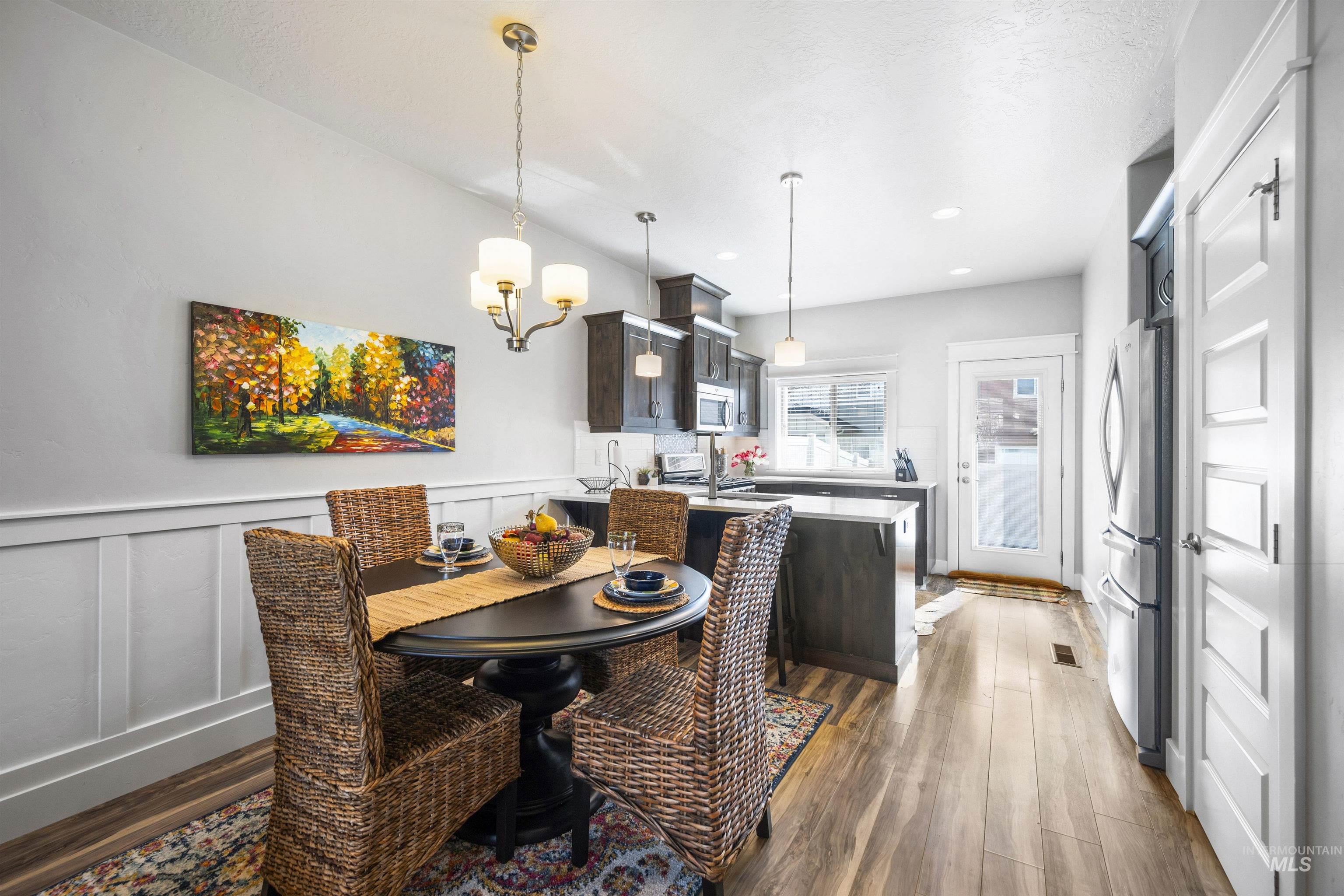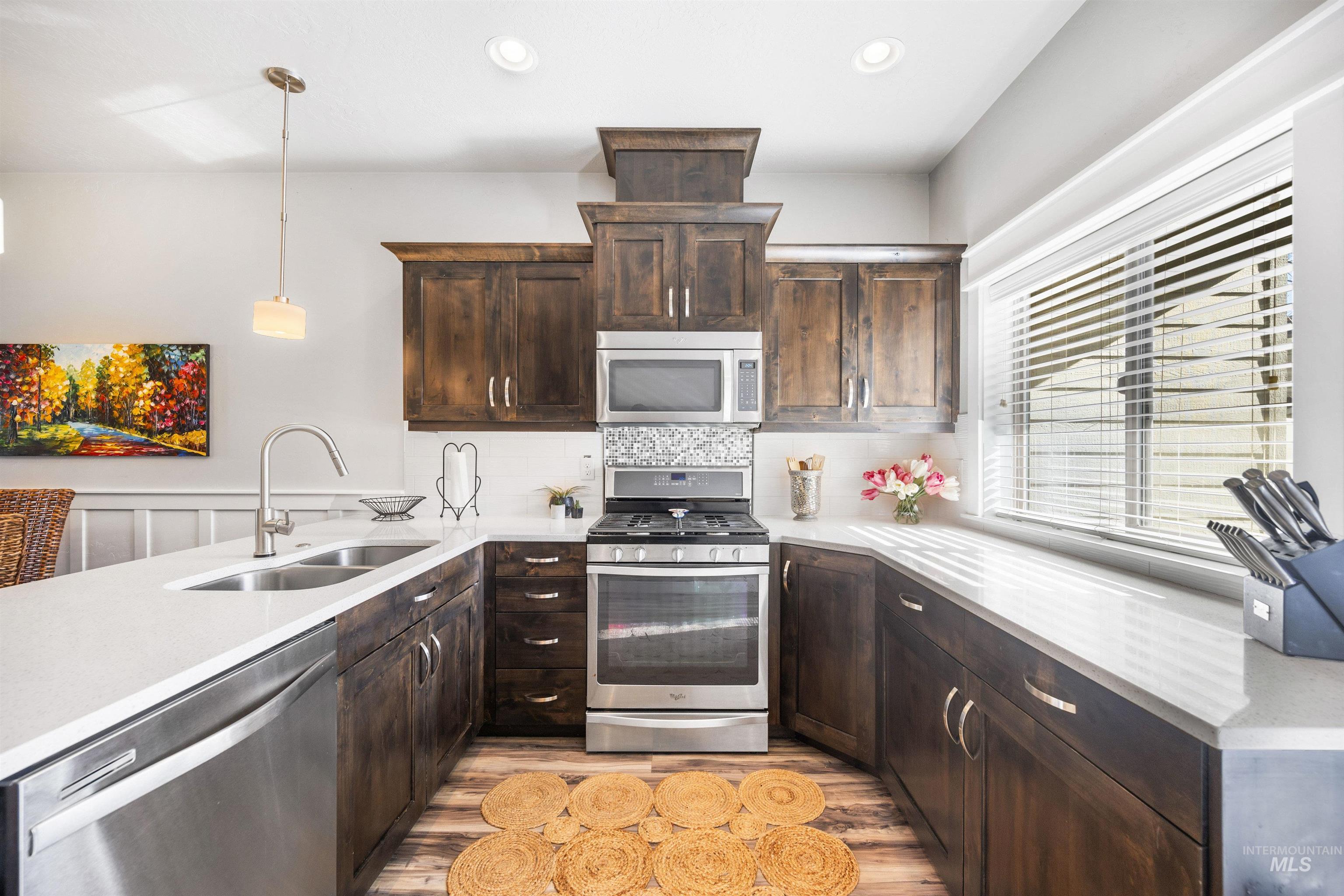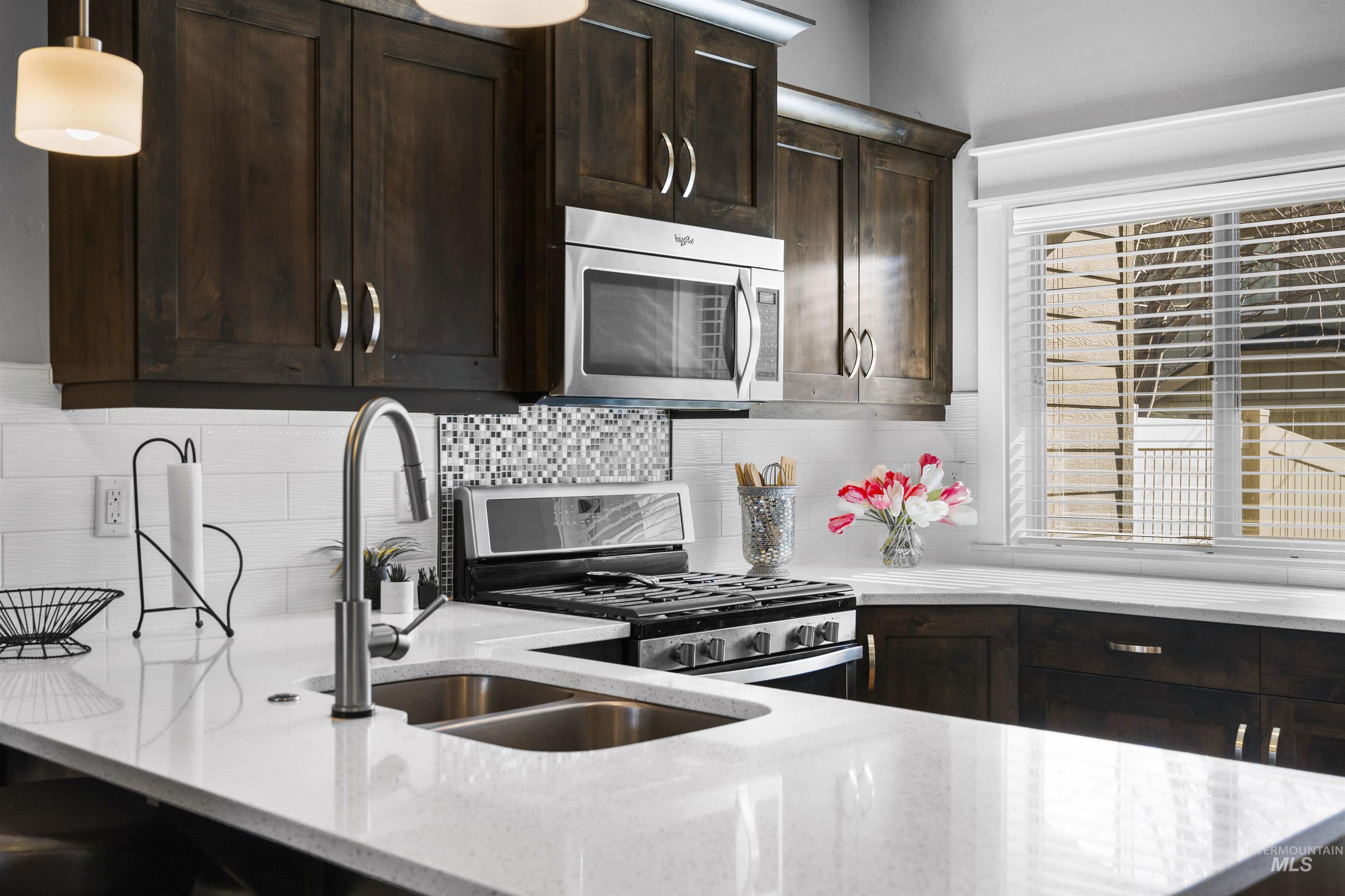 Nestled in the sought-after South Creek neighborhood, this stunning townhome offers modern comfort and style on a single level. The inviting kitchen is a chef's dream, featuring elegant quartz countertops, custom alder cabinetry, and sleek stainless steel appliances. The spacious primary bedroom is a retreat of its own, complete with a generous walk-in closet that provides ample storage for your wardrobe and beyond. The ensuite bathroom offers dual vanities and a convenient linen closet, perfect for keeping everything organized. The two-car garage harbors your vehicles and the complete package offers a worry free, lock-and-leave lifestyle. Step outside to a serene covered patio--ideal for outdoor dining, entertaining, or simply unwinding in the fresh air. The community pool is a fantastic added feature, offering a refreshing escape and a chance to connect with friendly neighbors. With its combination of convenience, luxury, and charm, this townhome is the perfect place to call home.
