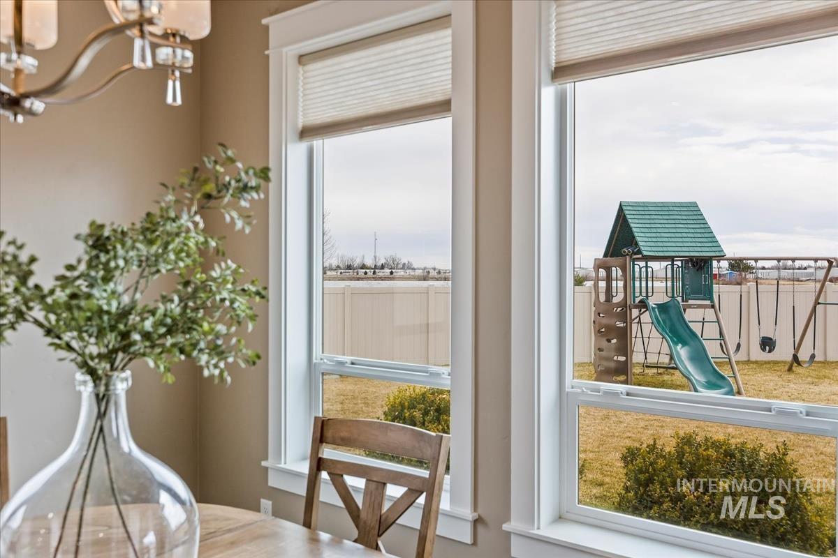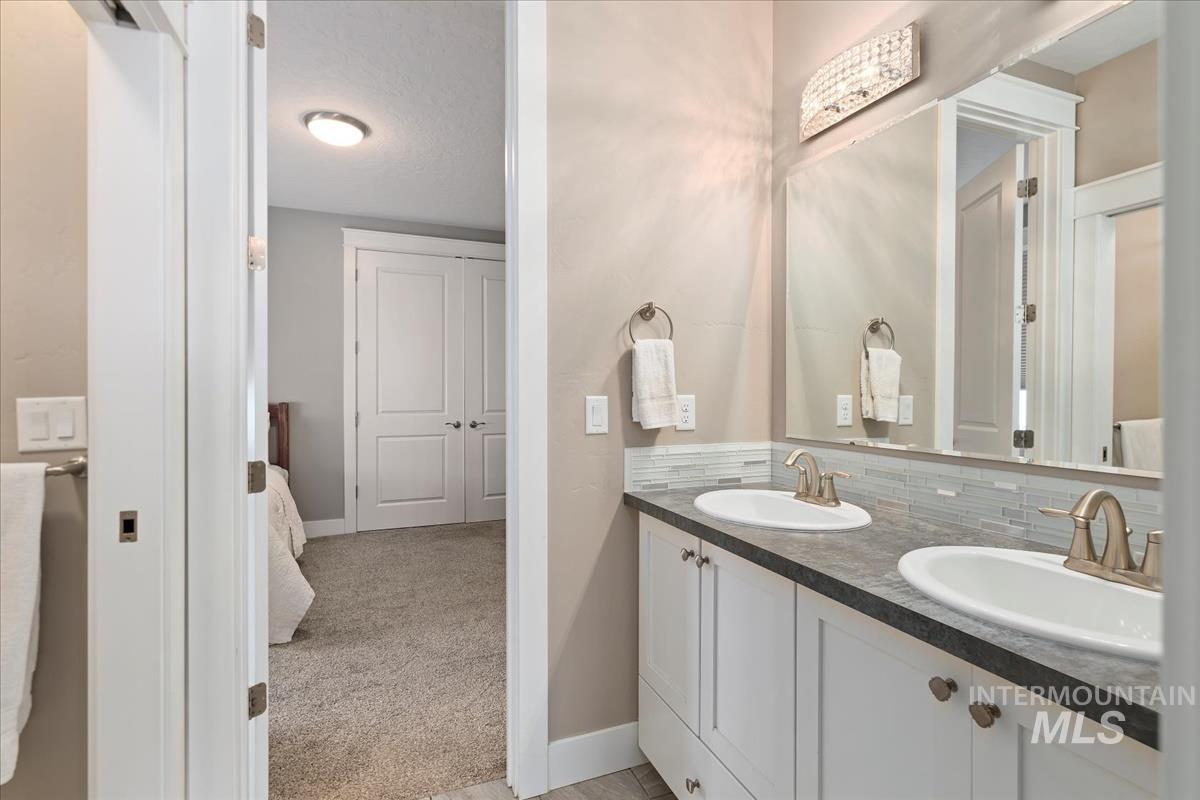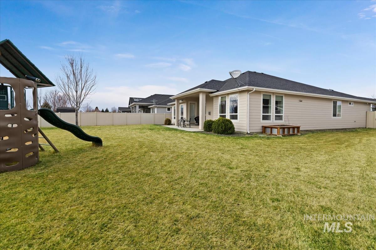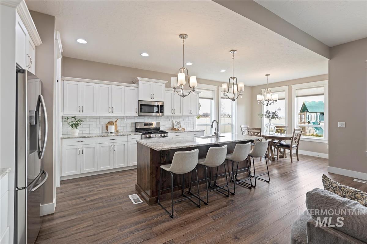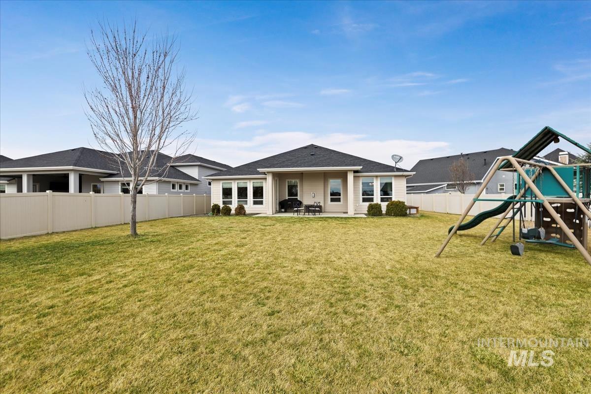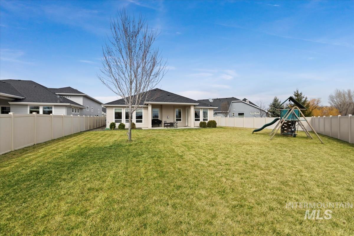Welcome to this amazing 3-bedroom, 2.5-bathroom home with views! Nestled on a .237-acre lot, this 2,089 sqft home offers privacy and tranquility with no backyard neighbors--just the view of Bogus Basin and, directly behind you, a pond. The open-concept layout creates a warm atmosphere, centered around a white kitchen with modern finishes, ample counter space, and a large island with a farmhouse sink. The cozy fireplace in the living area adds charm. The primary suite features a private door to the back patio, a spa-like bathroom with a walk-in shower, garden soaker tub, and dual vanities, plus a large walk-in closet that connects to the laundry room, complete with a lot of cabinetry and a built-in mini desk. 2 additional bedrooms with a Jack-and-Jill bathroom are located on the opposite side of the home. Enjoy the covered patio, hang out in the large yard and enjoy views of Bogus and the pond. With a 2-car garage and a prime location in a quiet neighborhood, this home is a Gem!
