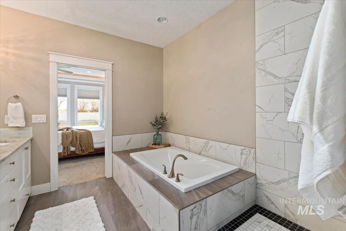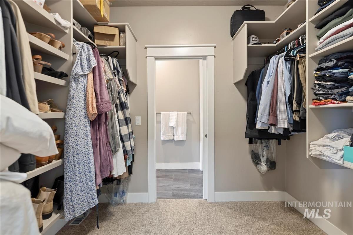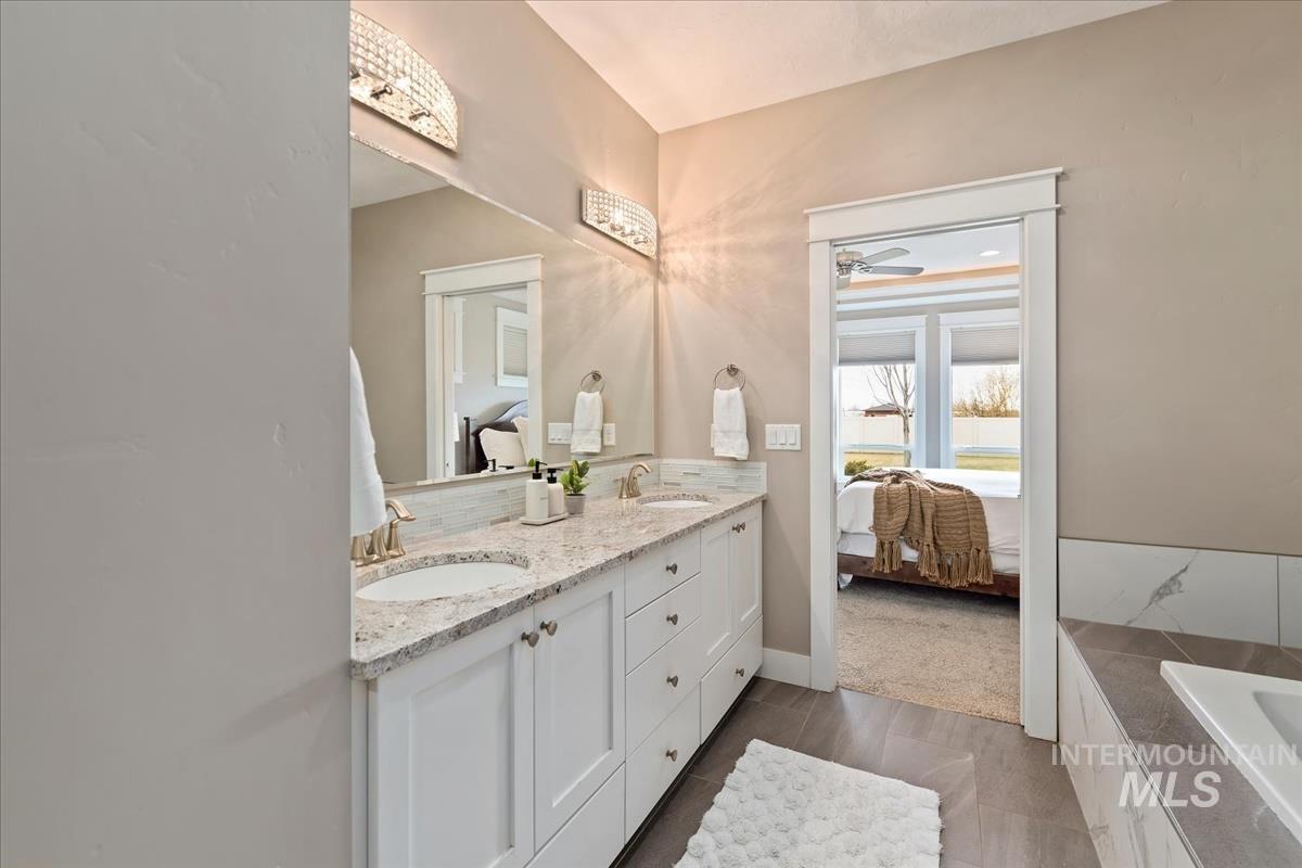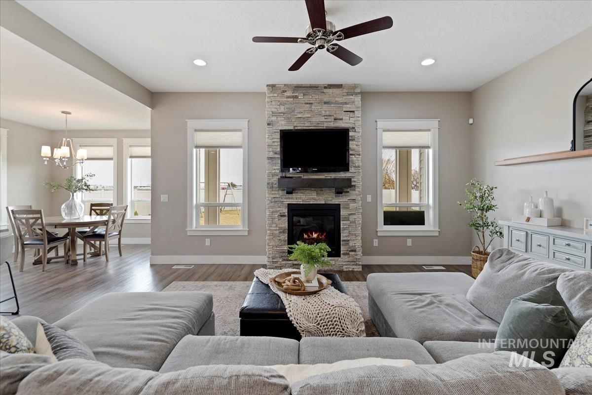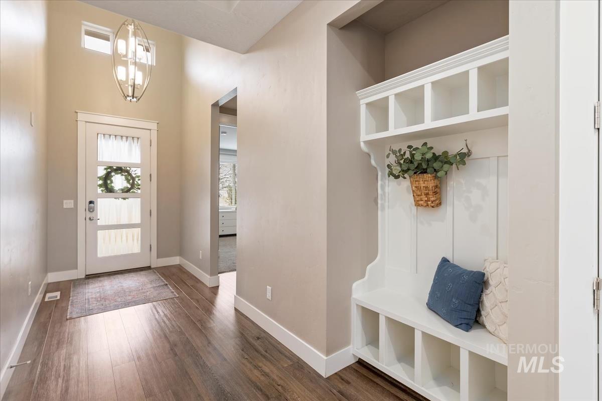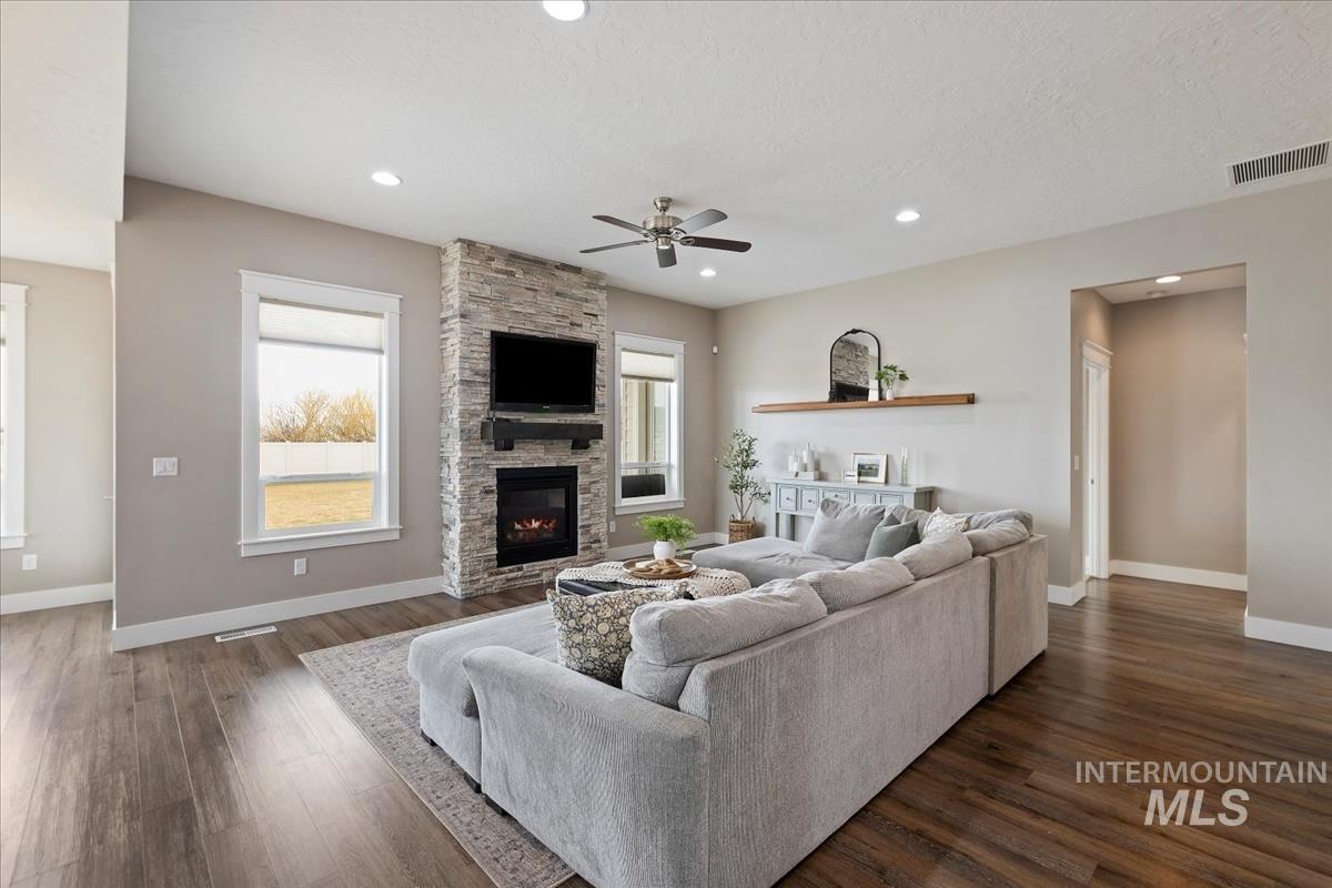 Welcome to this amazing 3-bedroom, 2.5-bathroom home with views! Nestled on a .237-acre lot, this 2,089 sqft home offers privacy and tranquility with no backyard neighbors--just the view of Bogus Basin and, directly behind you, a pond. The open-concept layout creates a warm atmosphere, centered around a white kitchen with modern finishes, ample counter space, and a large island with a farmhouse sink. The cozy fireplace in the living area adds charm. The primary suite features a private door to the back patio, a spa-like bathroom with a walk-in shower, garden soaker tub, and dual vanities, plus a large walk-in closet that connects to the laundry room, complete with a lot of cabinetry and a built-in mini desk. 2 additional bedrooms with a Jack-and-Jill bathroom are located on the opposite side of the home. Enjoy the covered patio, hang out in the large yard and enjoy views of Bogus and the pond. With a 2-car garage and a prime location in a quiet neighborhood, this home is a Gem!